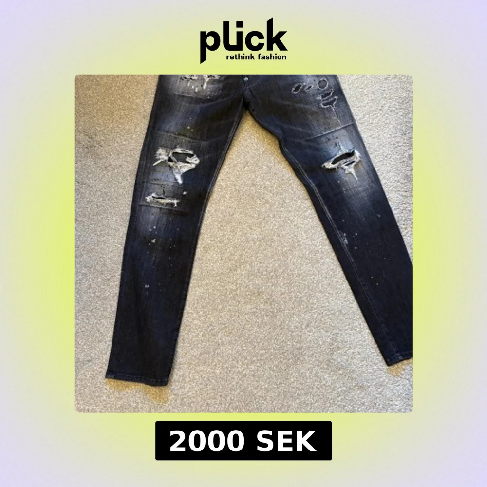 Riktigt snygga svarta jeans från Dsquared2 med slitna detaljer och färgstänk. Modellen har smal passform och stort Dsquared2-tryck på bakfickorna. Jeansen är tillverkade i Italien och har en cool, edgy vibe som sticker ut.