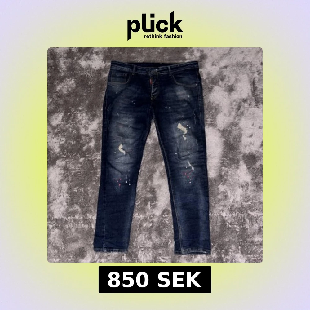 Snygga blå jeans från Dsquared2 med coola färgstänk och slitningar på benen. Klassisk femficksmodell med röd patch bak i midjan. Jeansen har en rak passform och är tillverkade i jeansmaterial. Perfekta för dig som vill sticka ut lite extra.