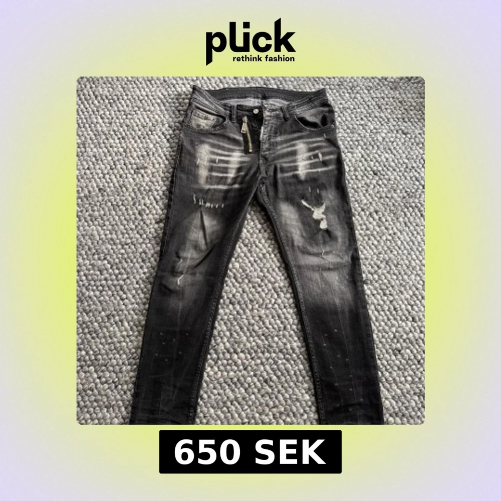 Ett par svarta s jeans från Dsquared2 med coola slitningar och blekta detaljer. Skulle säga att skicket är som nytt, finns några tecken på användning. Hör av dig vid frågor!