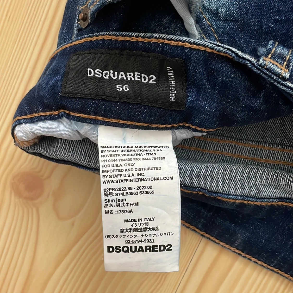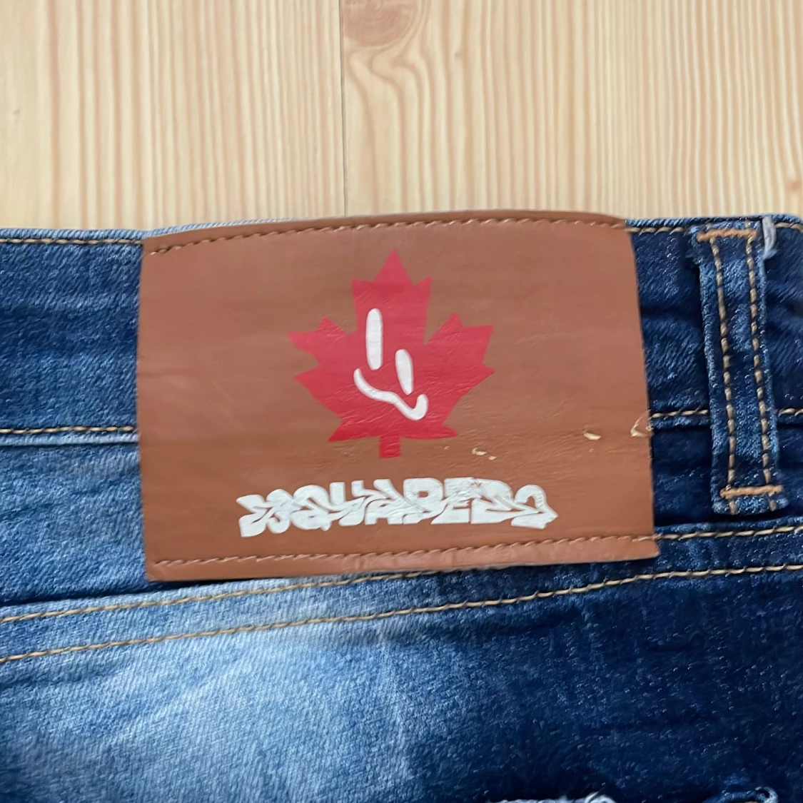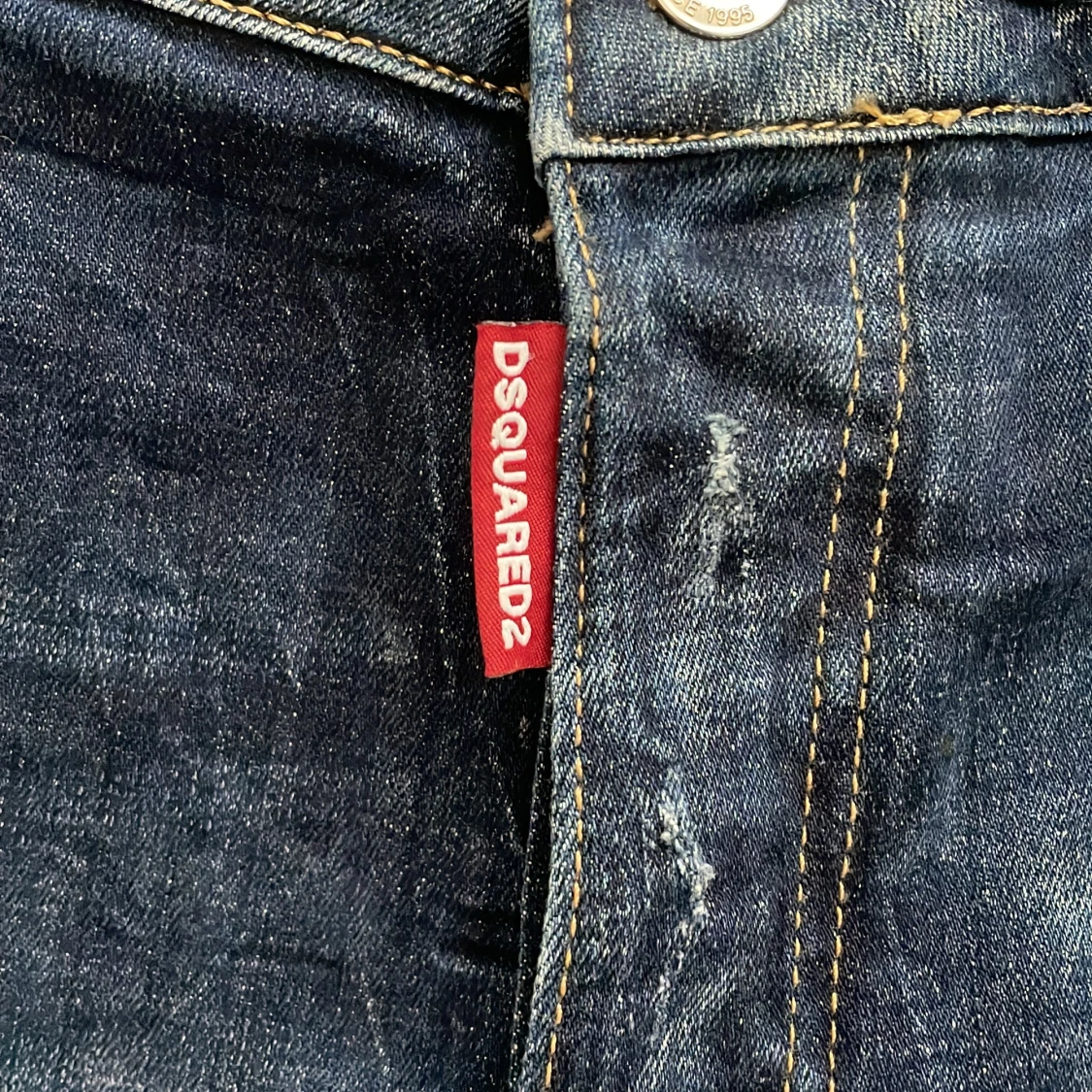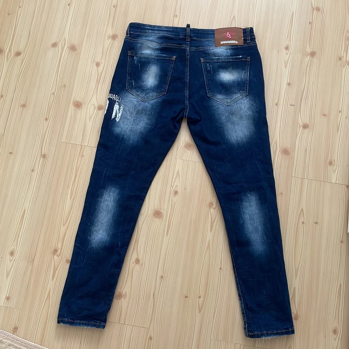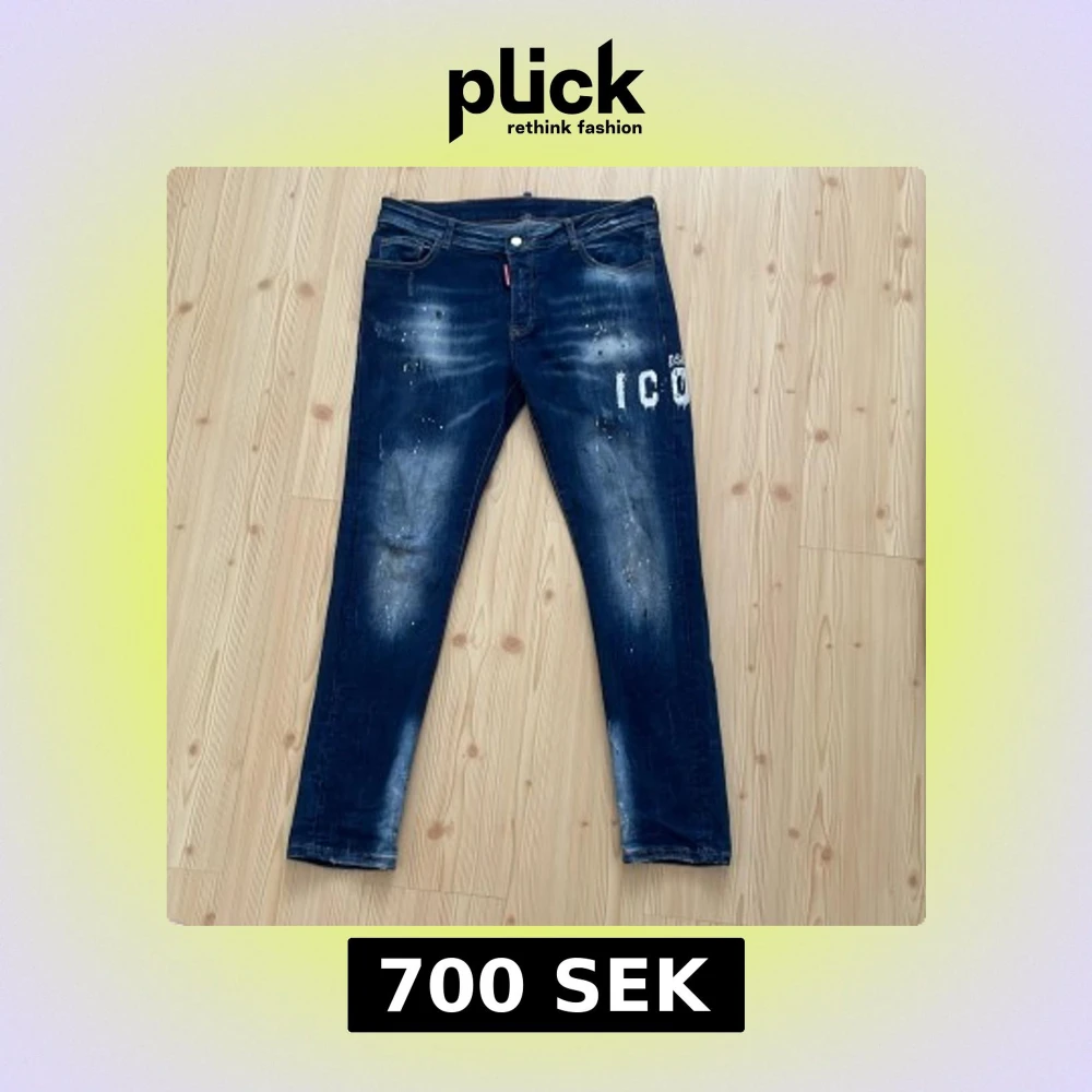 Snygga blå jeans från DSQUARED2 i slim fit med coolt 'ICON' tryck och slitna detaljer. Jeansen har klassisk femficksdesign, kontrastsömmar och en mörk tvätt med ljusa partier. Materialet är jeans och passformen är tight, perfekt för dig som gillar streetstyle. Använt 2 gånger så helt nya.Priset kan diskuteras👍