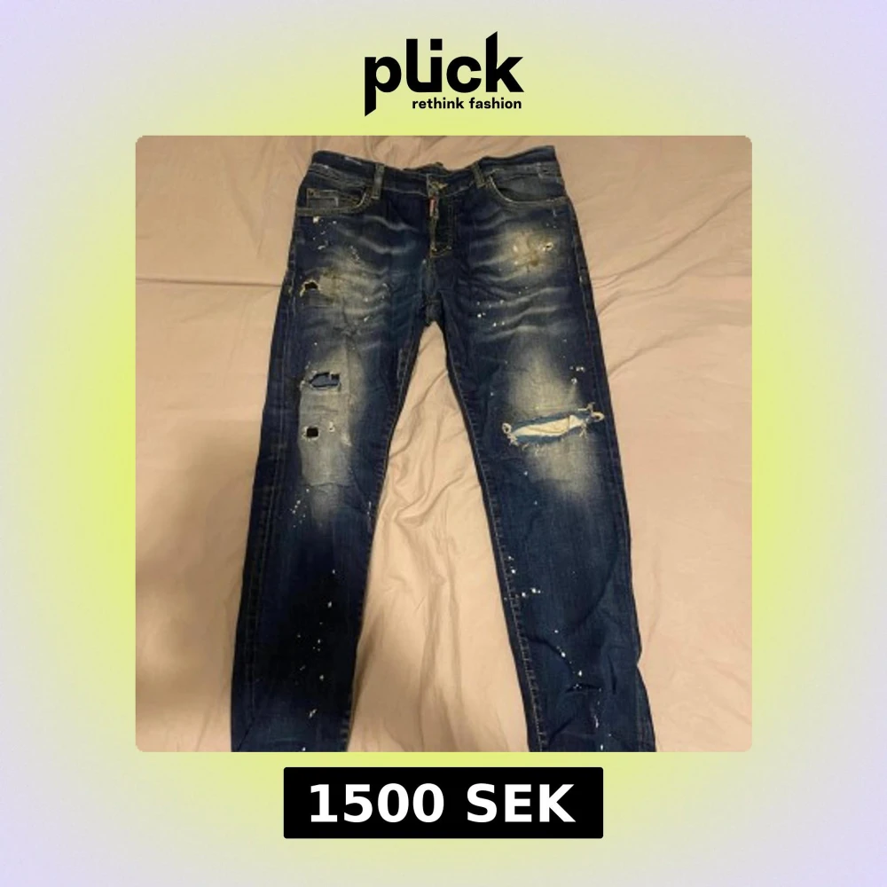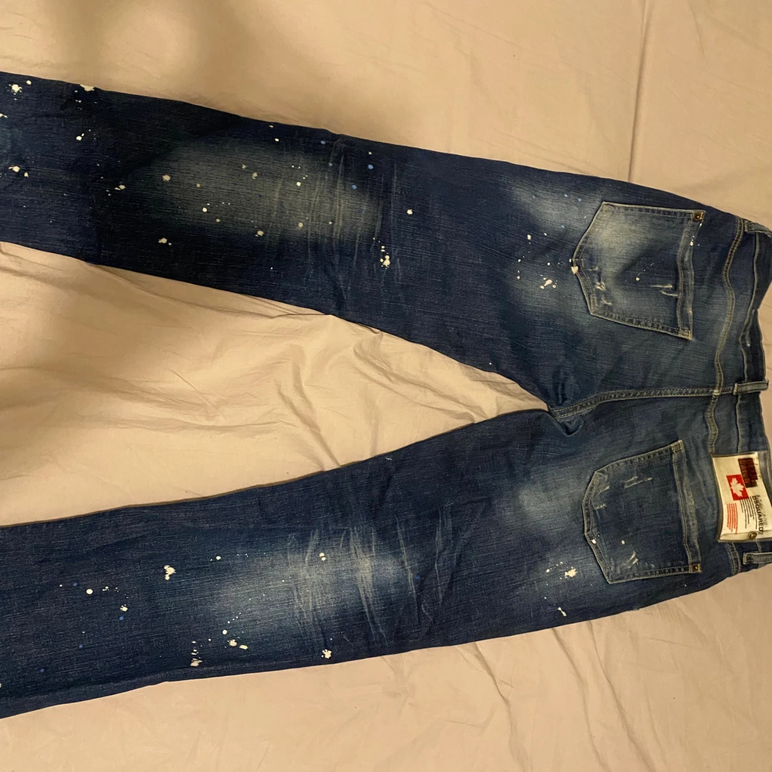 Snygga blå jeans från Dsquared2 med coola slitningar, hål och färgstänk med tydliga detaljer och logotyp på bakfickan. Jeansen har en smal passform och är tillverkade i jeansmaterial.