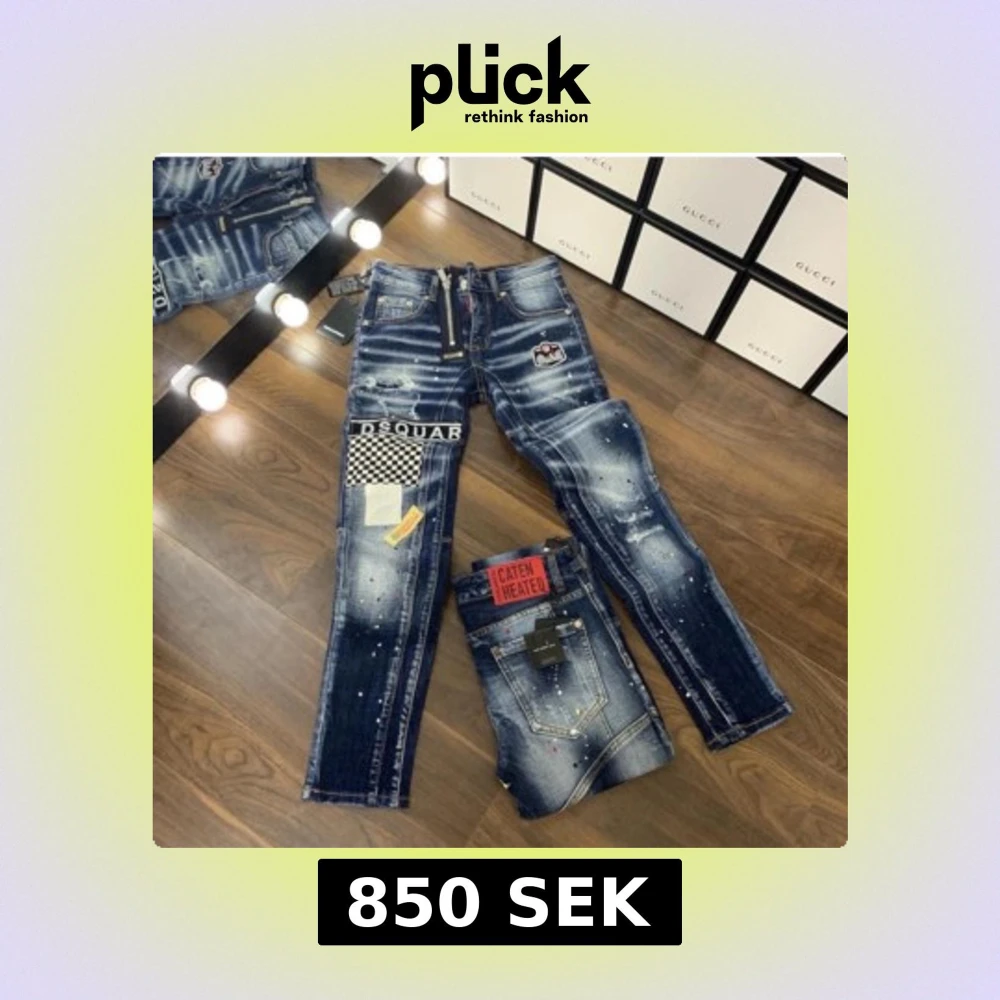 Snygga blå jeans från Dsquared2 med slitningar, patchar och coola detaljer som checker-mönster och broderade märken. Jeansen har smal passform, normal midja och färgstänk för en edgy look. Perfekta för dig som vill sticka ut.