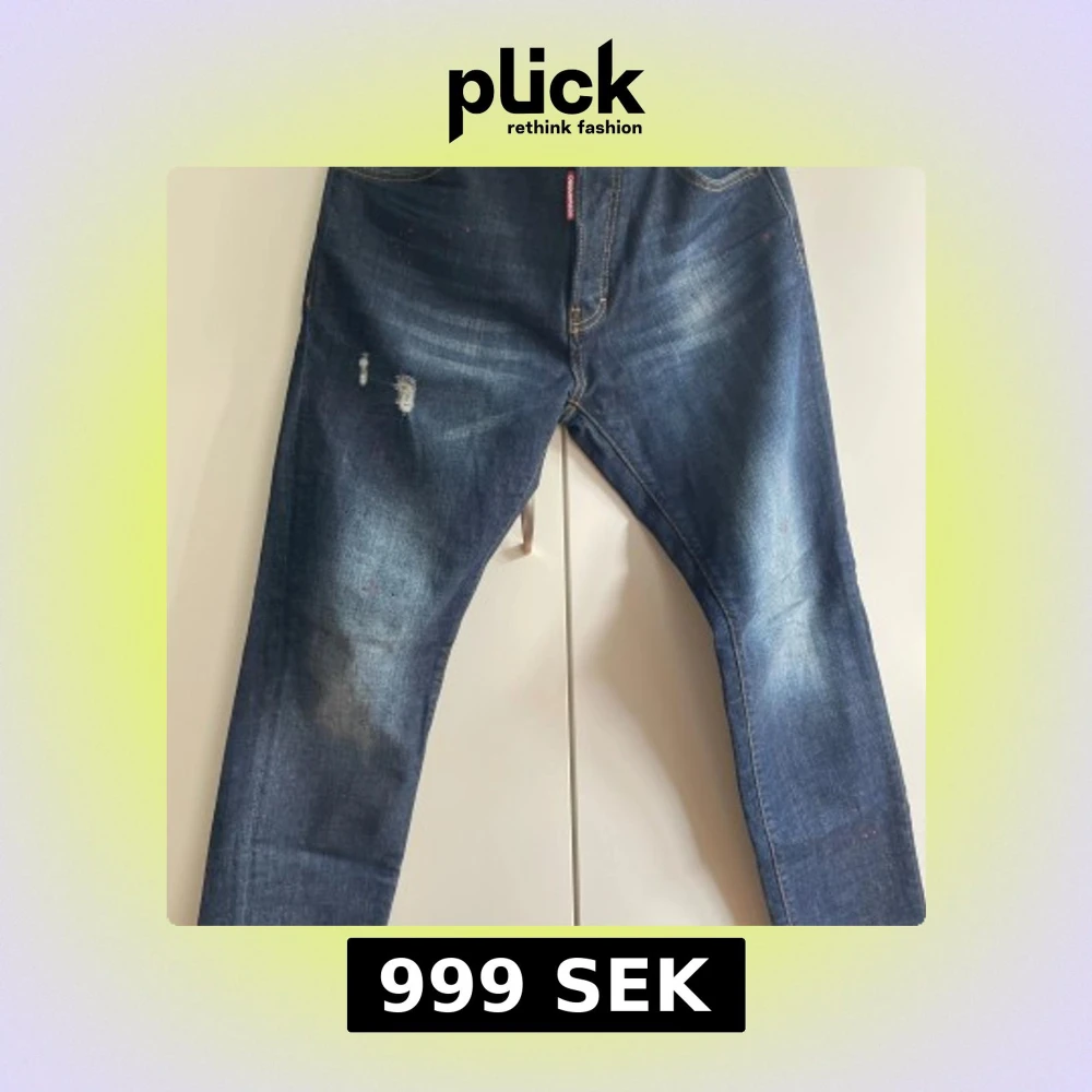 Snygga blå jeans från Dsquared2 med slitningar och coola detaljer. Baksidan har en stor gul och röd patch med siffran 2 och autograftryck. Jeansen har klassisk femficksdesign, orange sömmar och är tillverkade i bomullsdenim.