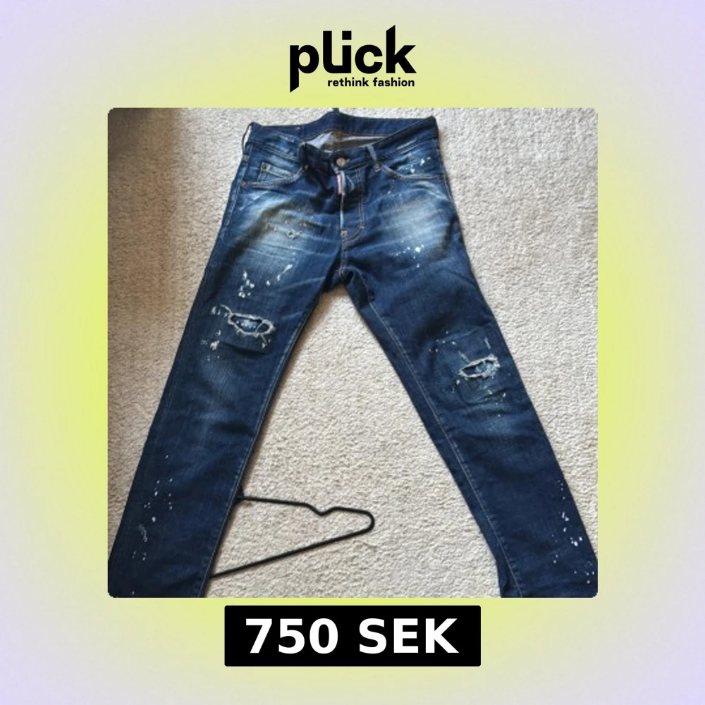 Snygga blå jeans från Dsquared2 med coola slitningar och färgstänk på både fram- och baksida. Helt nya.