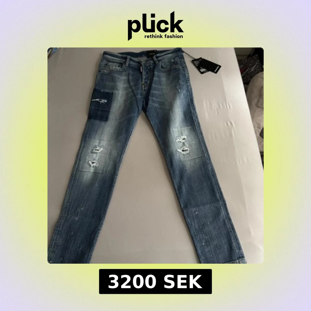 Snygga blå jeans från Dsquared2 med slitningar och patchade detaljer på benen. Jeansen har en cool vintage look med ljusa partier och unika tryck på bakfickan. Klassisk femficksmodell och raka ben. Perfekta för dig som gillar streetstyle. Nypris 4305