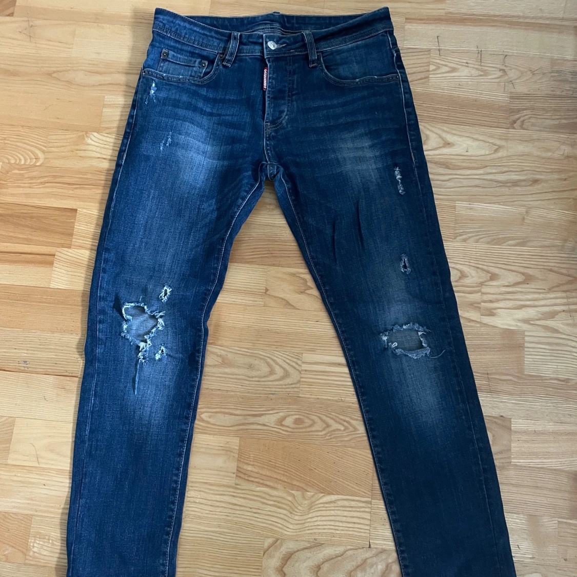 Snygga blå jeans från Dsquared2 med slitningar och hål på benen för en cool, avslappnad look. Klassisk femficksmodell med normal passform och raka ben. Jeansen har tydliga slitdetaljer och är tillverkade i bomullstyg med denimkänsla.