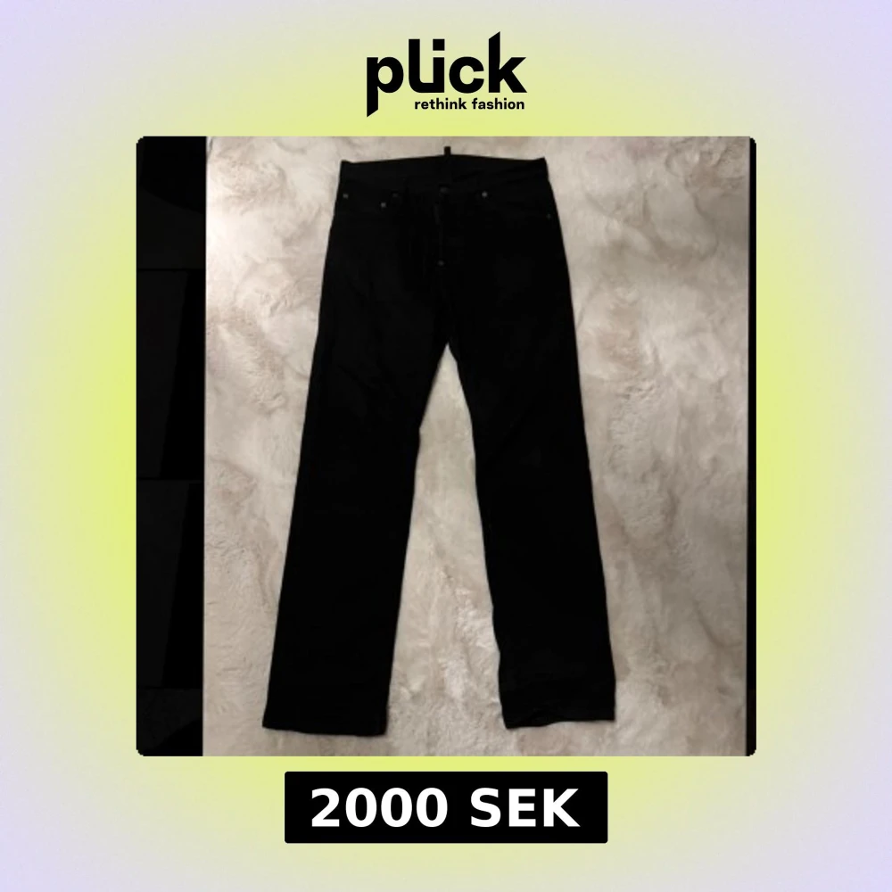 Snygga svarta jeans från Dsquared2 i klassisk rak modell. Jeansen har fem fickor, diskreta nitar och patch bak i midjan. Nypris på dessa jeans är 4600, använda fåtal gånger så i mycket bra skick. Allt OG fås med