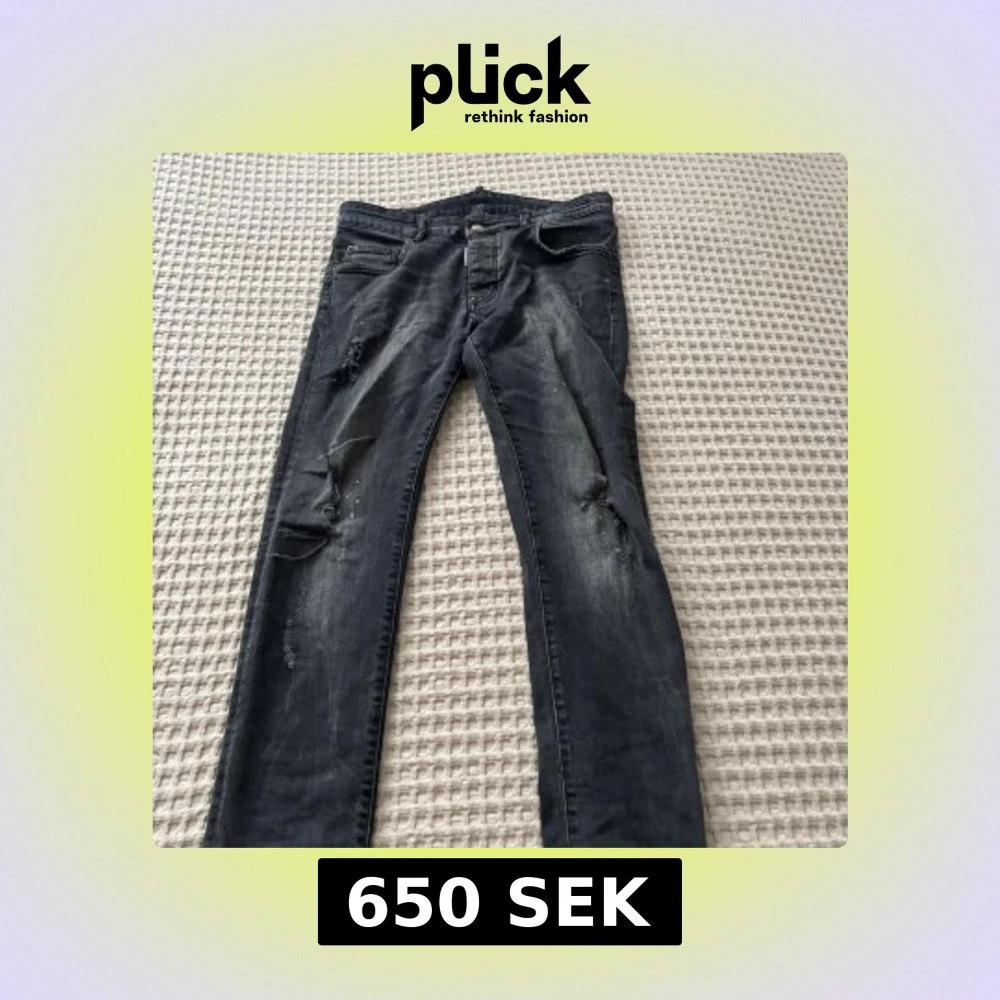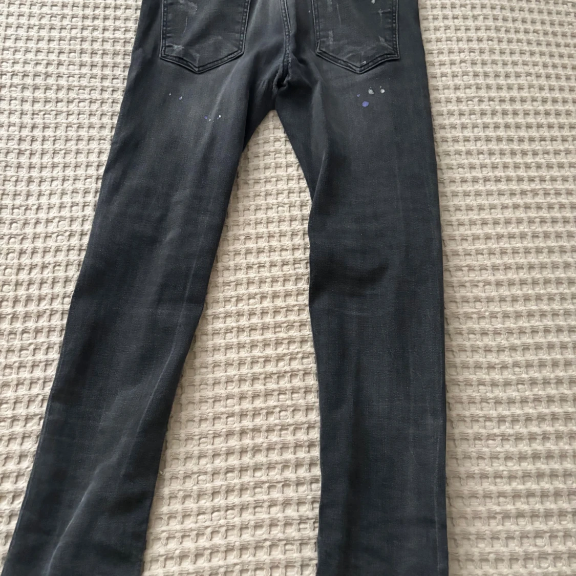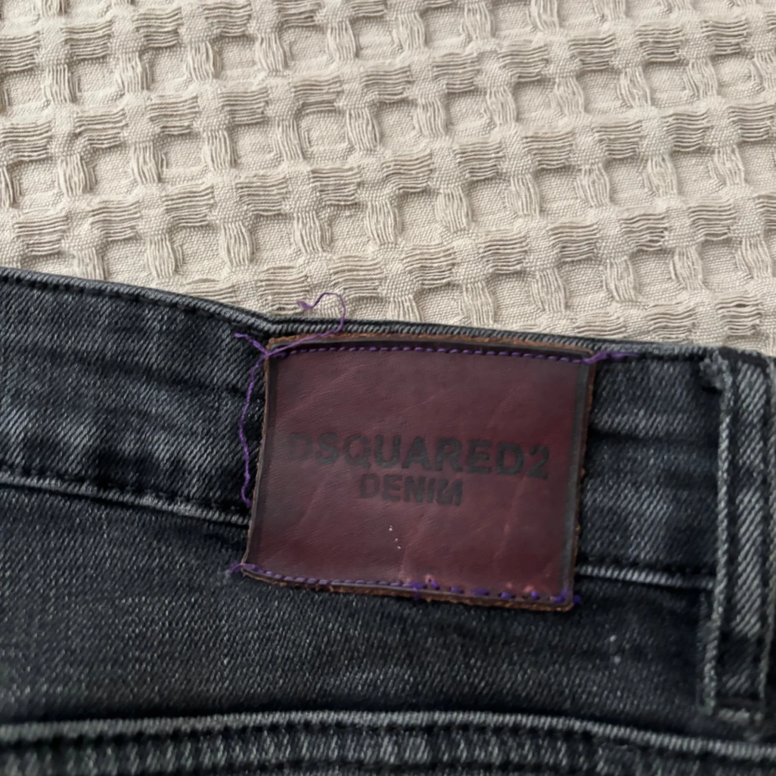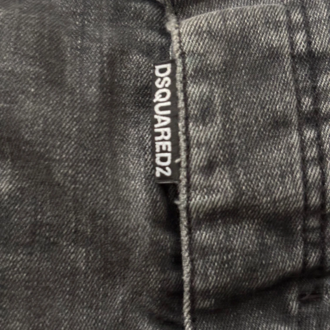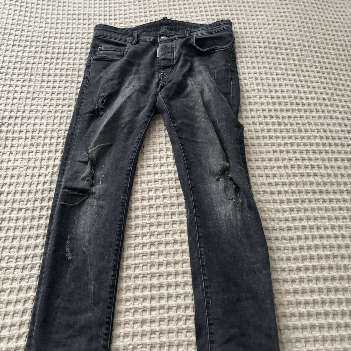 Snygga svarta jeans från Dsquared2 med slitna detaljer på benen. Jeansen har klassisk femficksdesign, diskreta färgstänk på baksidan och Dsquared2-logga på både läderpatch och ficka. Perfekt för dig som gillar en edgy streetstil.