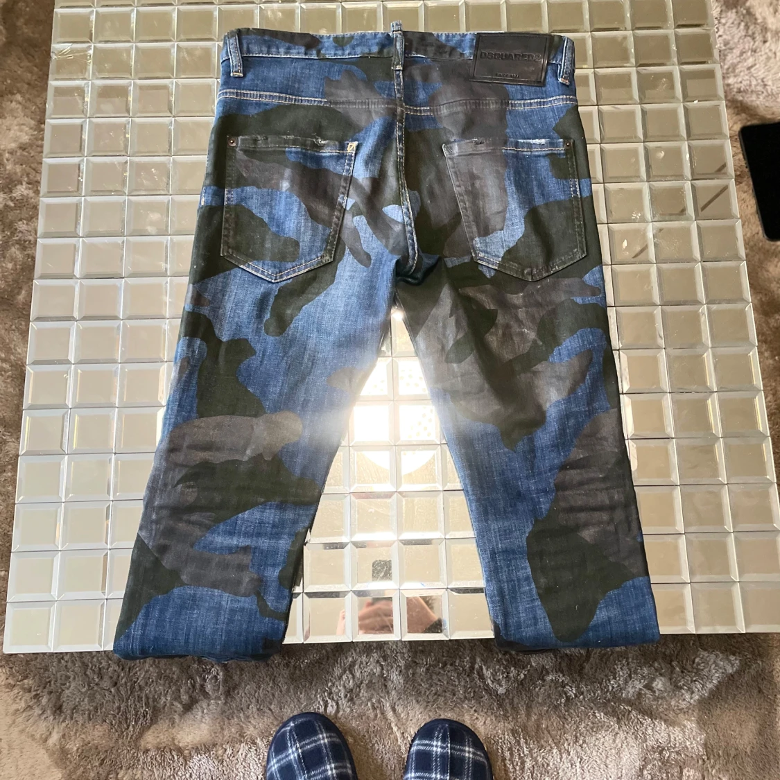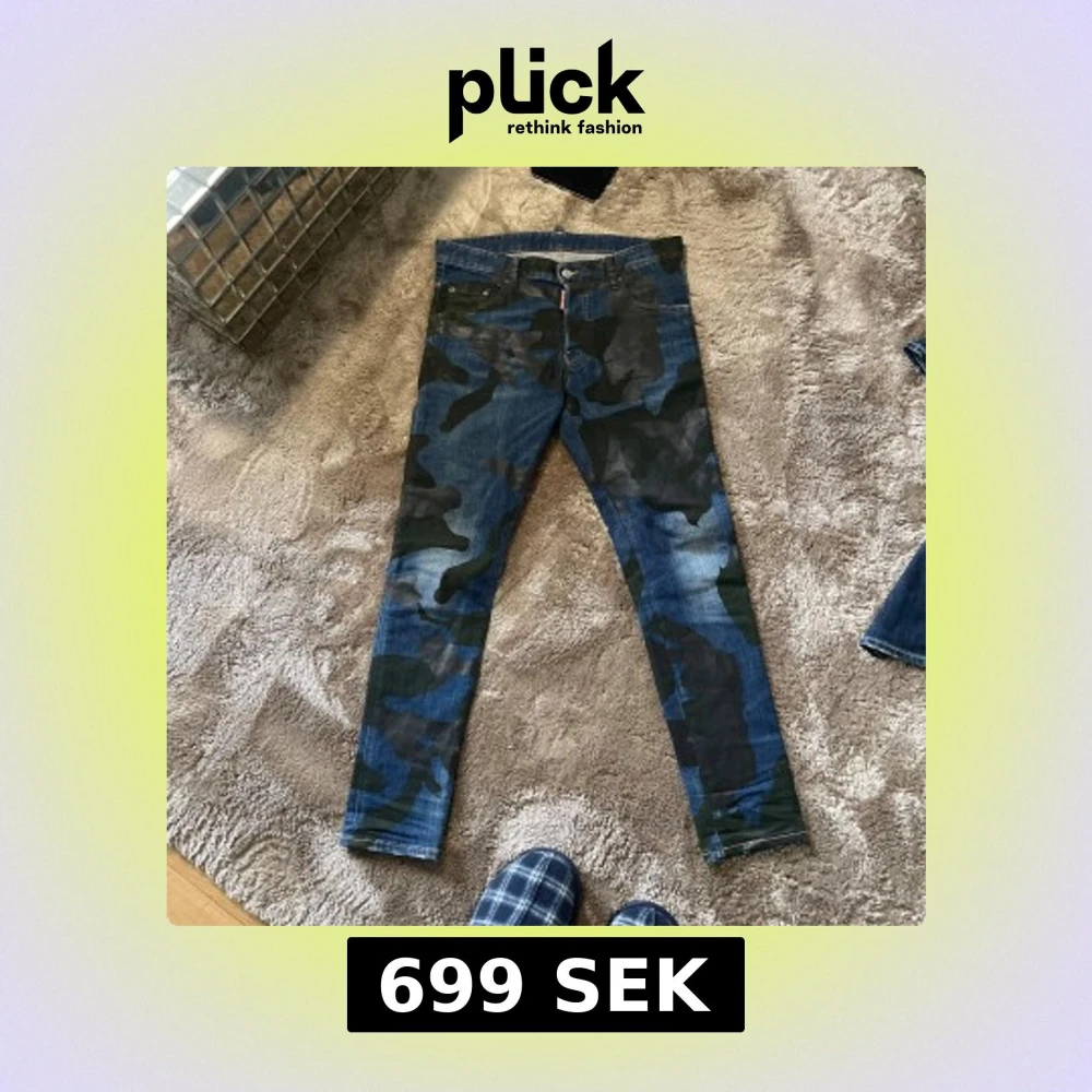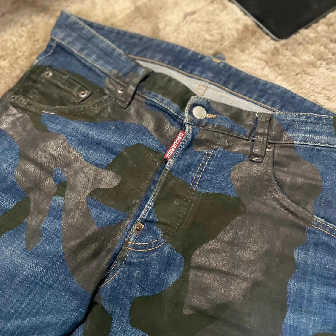 Snygga jeansbyxor med ett coolt camouflage-mönster i blått och grönt. Byxorna har en klassisk femficksdesign och en knappgylf. Perfekta för en avslappnad stil med en twist. Lite Chris Heyn vibbar