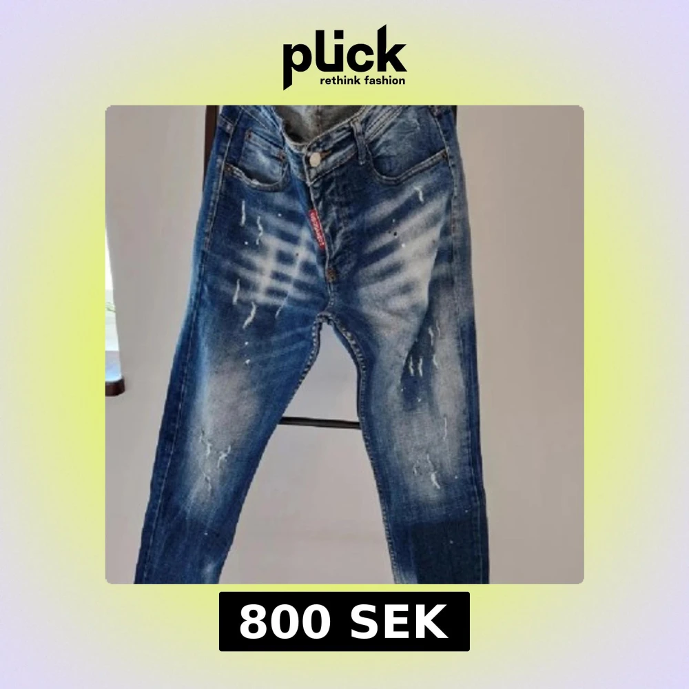 Säljer ett par blå jeans från ICON med coola slitningar och blekta detaljer både fram och bak. Jeansen har klassisk femficksdesign, normal passform och är tillverkade i jeansmaterial. Perfekt för dig som gillar en streetig och avslappnad look.