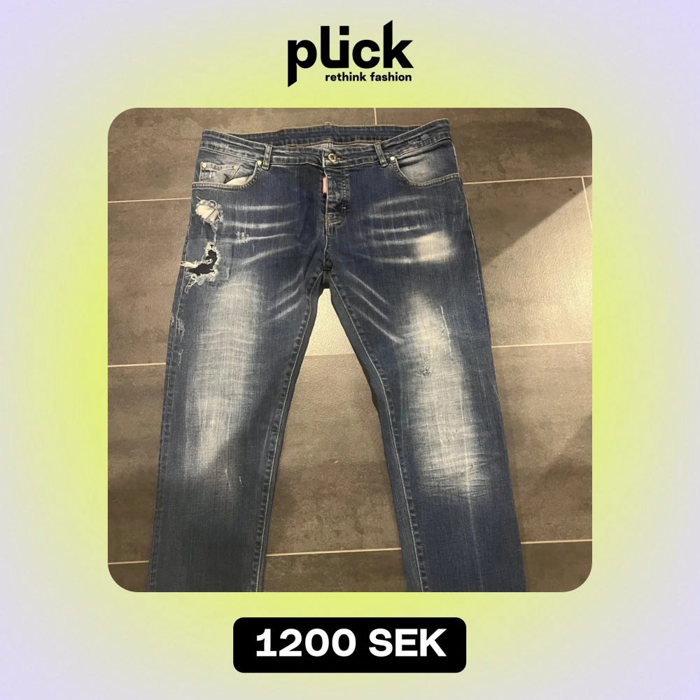 Säljer ett par blå jeans med coola slitningar och en vintage look. Perfekta för en avslappnad stil med lite edge. Passar bra till både vardag och fest! Med mera frågor så är de bara att höra av sig och även pris går att diskutera.