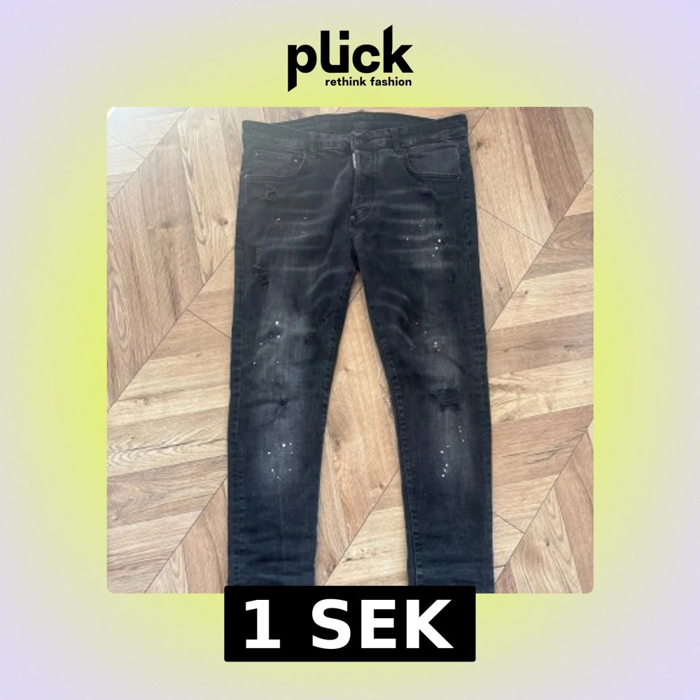 Svarta jeans med skinny passform och slitna detaljer samt vita färgstänk. Jeansen har klassisk femficksdesign och dragkedjegylf. Perfekta för en trendig och avslappnad look. Kom med pris förslag eller frågor