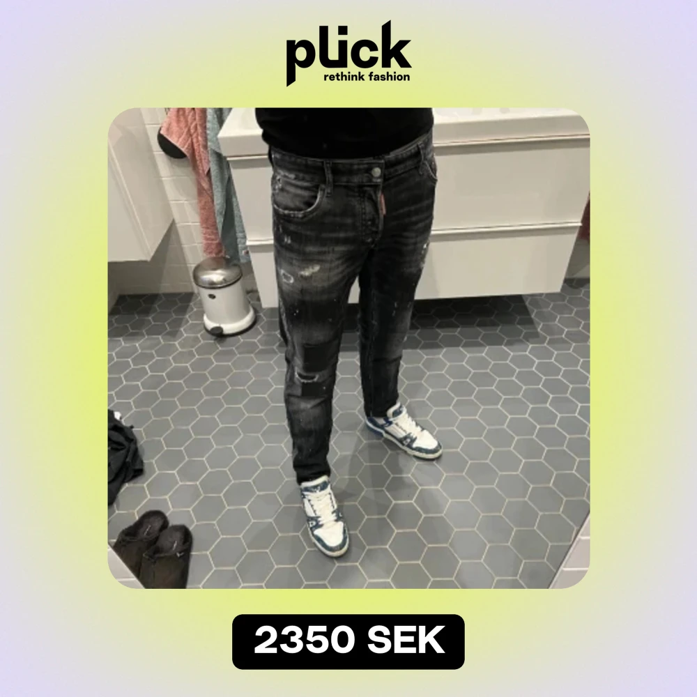 Svarta dsquared2 jeans med slitning som är i bra skick då jeansen är för stora. Köpte jeansen på NK för cirka 6 000kr (kvitto finns). Skriv till mig om ni har frågor om storlekar, pris mm… (Tags medföljer)