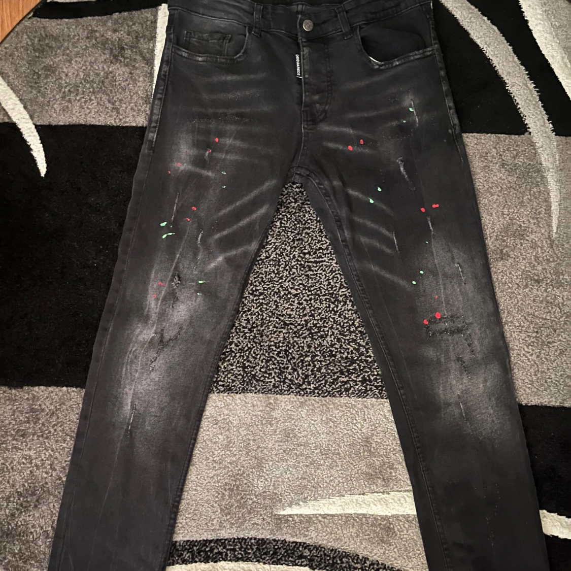 Knappt använda dsquared jeans som passar bra i 170-180. Jeansen sitter slim på mig och jag är smal. skriv gärna om du har några frågor. Priset är inte hugget i sten