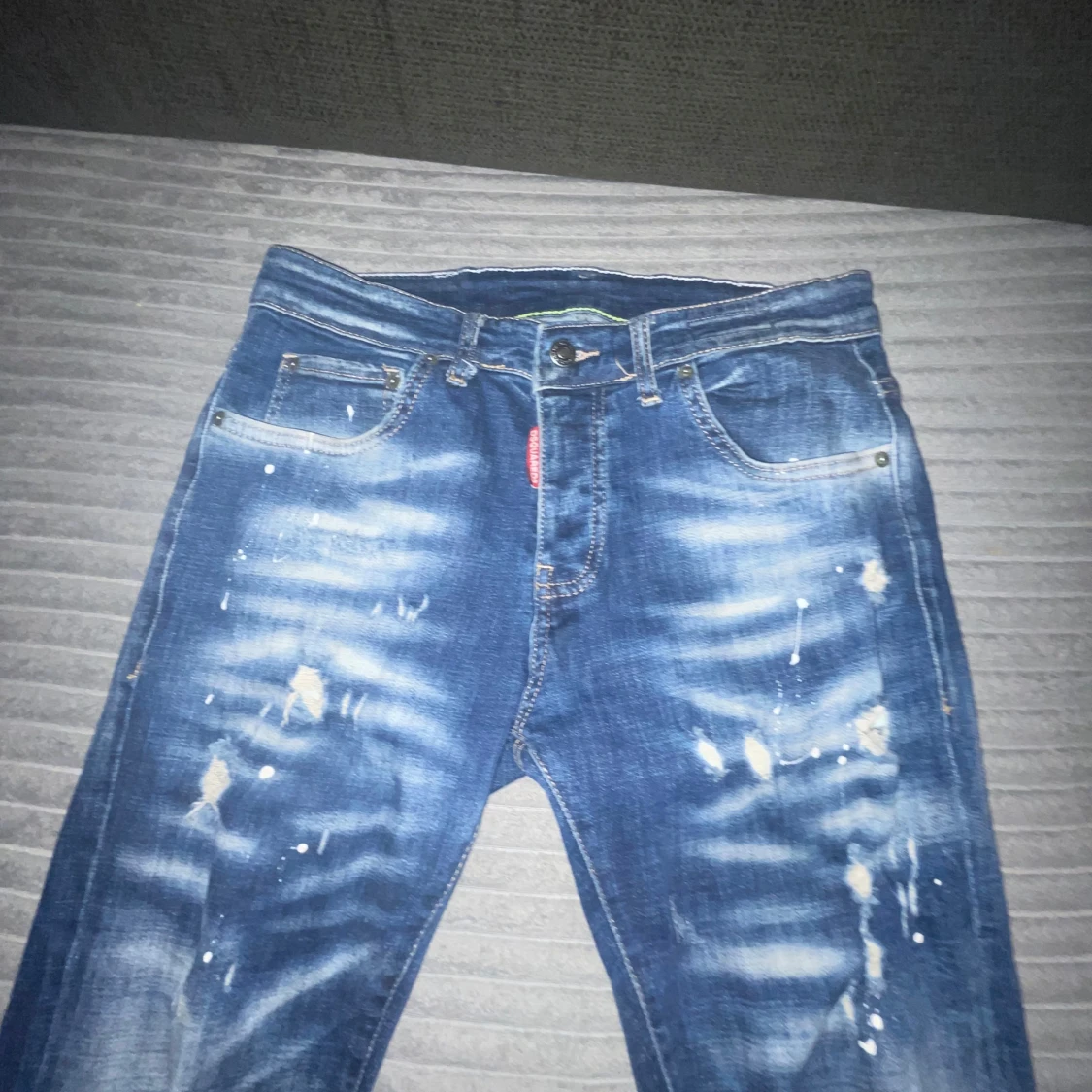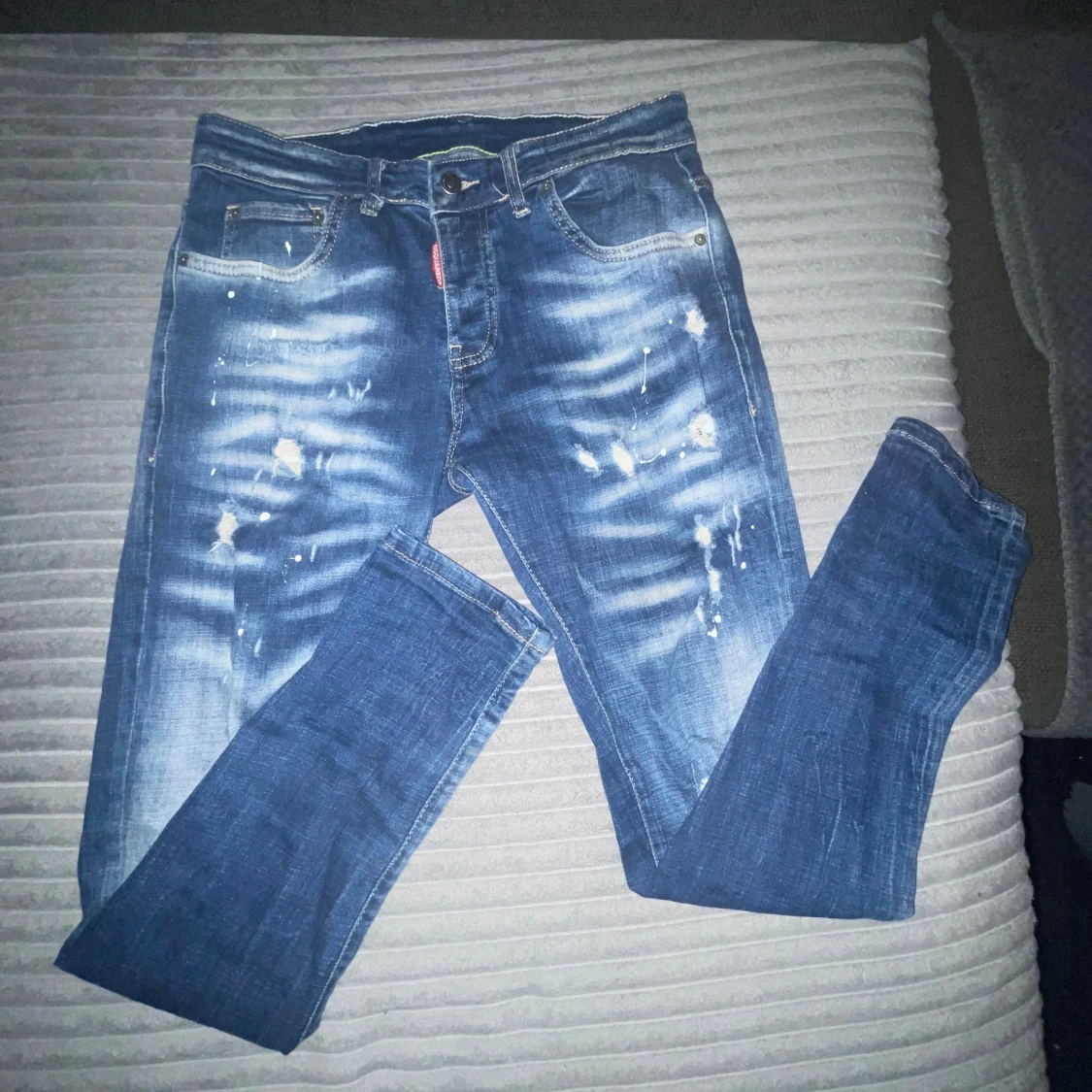 Snygga blå jeans från Dsquared2 med slitna detaljer och en cool tvättad look. De har en knappgylf och klassisk femficksdesign. Perfekta för en avslappnad stil.