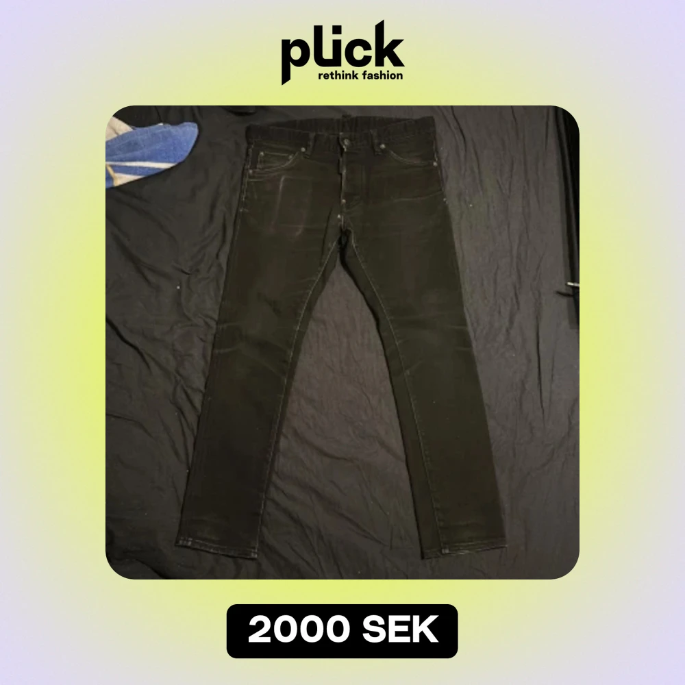 Säljer nu mina svarta dsquared2 jeans. Märket där bak är lite slitet och det finns även vita märken runt om byxorna. Borde gå att få bort på något sätt. Kan även prutas. Kom dm för mer.