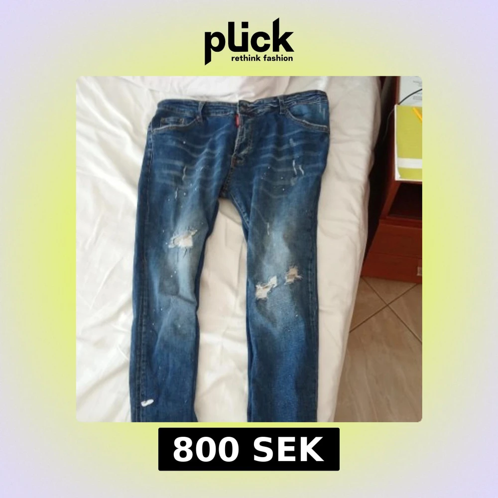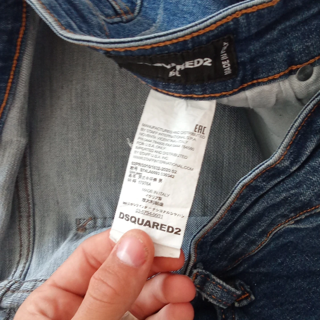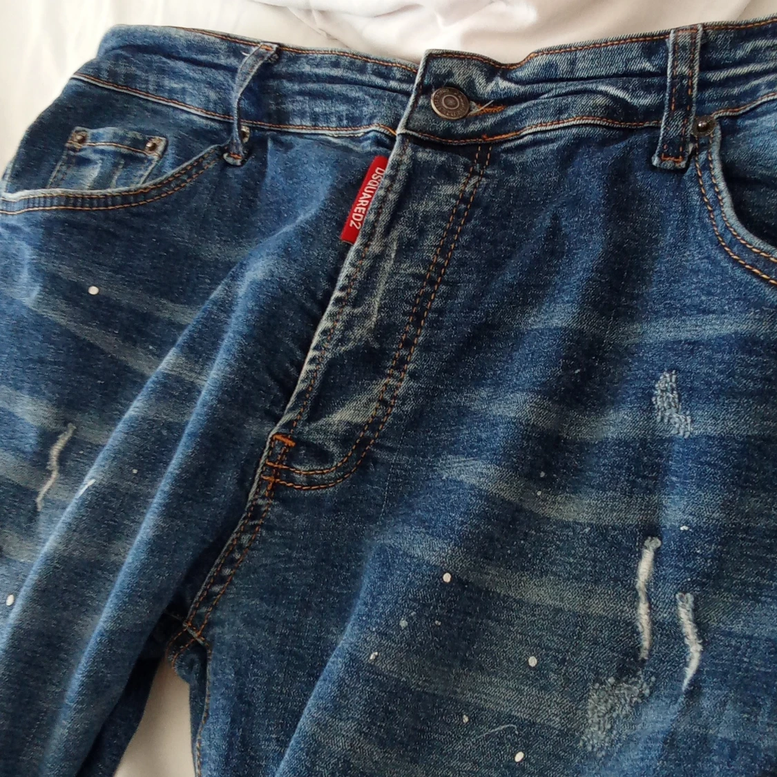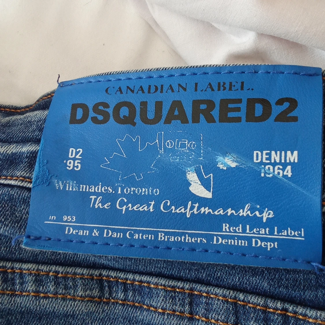 Här har vi sköna ganska nya DSQUARED2 jeans o storlek 56 men folket dom passar storlek S, dom sitter tight/bägy lite svårt o förklara men dom sitter på ett skönt sätt dom sitter lite vågigt! Dom är sköna och passar S som sagt i herrstorlek!