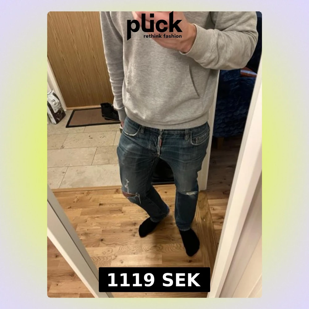 Säljer ett par vintage Dsquared2 jeans med slitna detaljer och snygga slitningar på knäna. Storleken är 48 och sitter som en w33 men passar även 32 och kanske 34