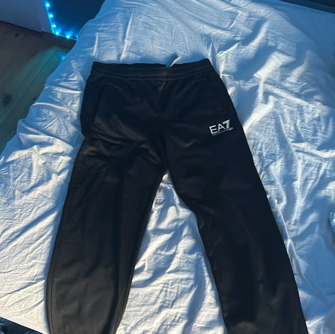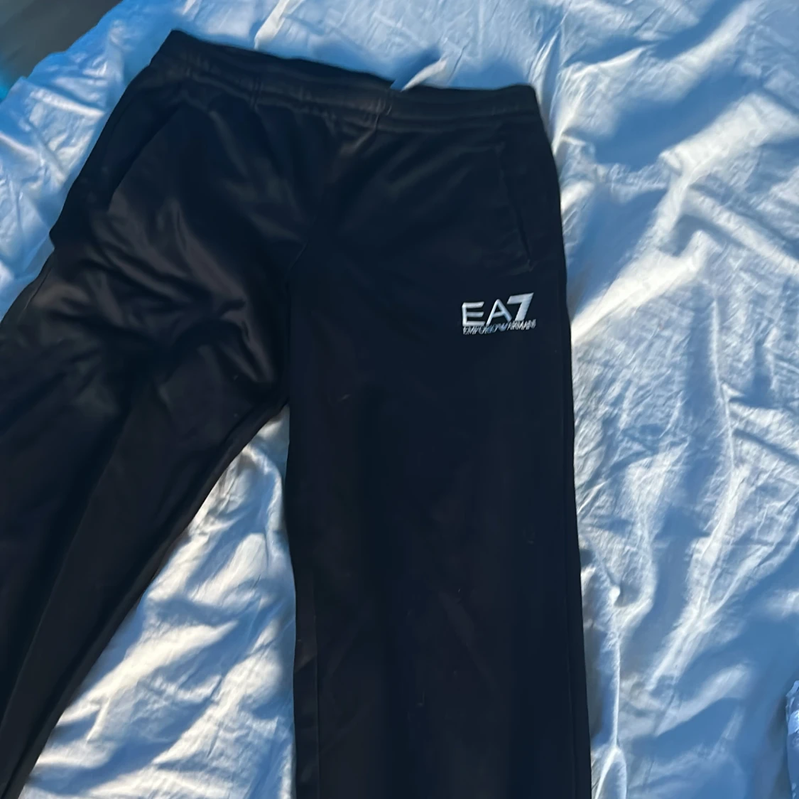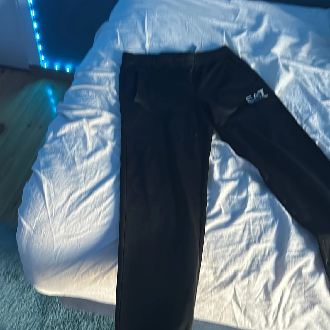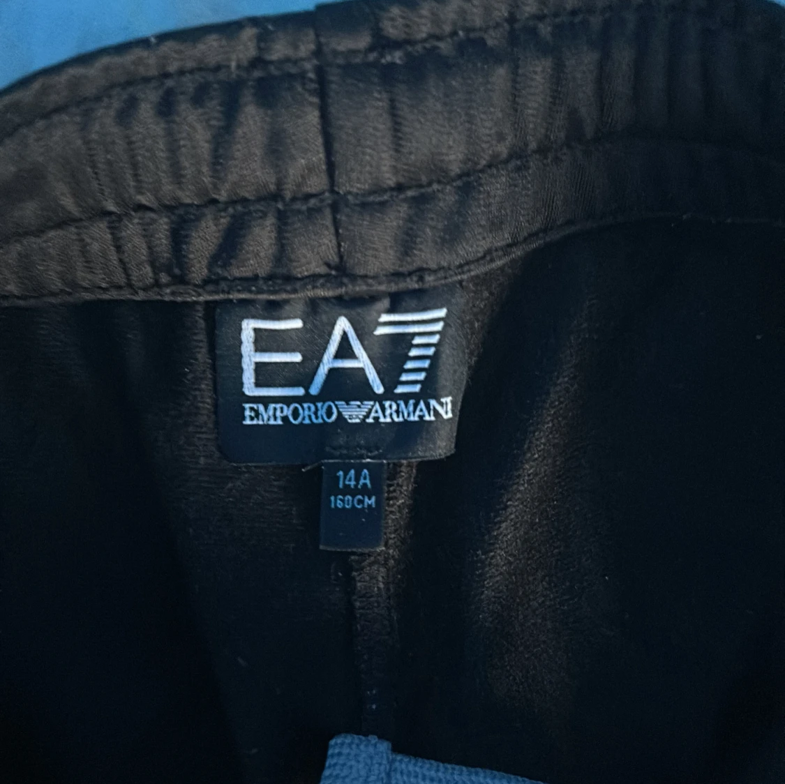 Snygga svarta mjukisbyxor från Emporio Armani med EA7-logga på benet. Perfekta för en avslappnad stil med elastisk midja för extra komfort. Tillverkade i mjukt material som ger en skön känsla hela dagen.