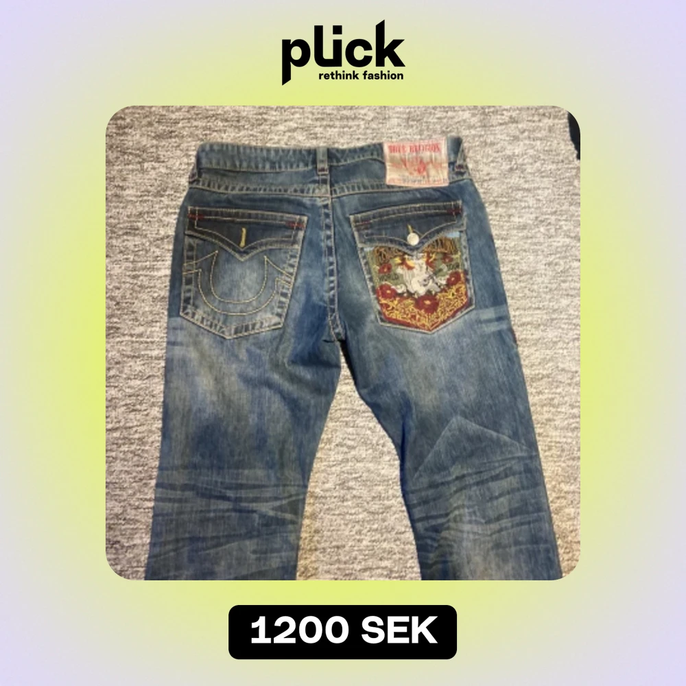 Skit snygga true religion jeans med cool design på högra bakfickan Baggy passform Gylfknappen ramla av men funkar helt perfekt med bälte eller så kan man sätta på en nu👌 Självfallet går det sänka priset
