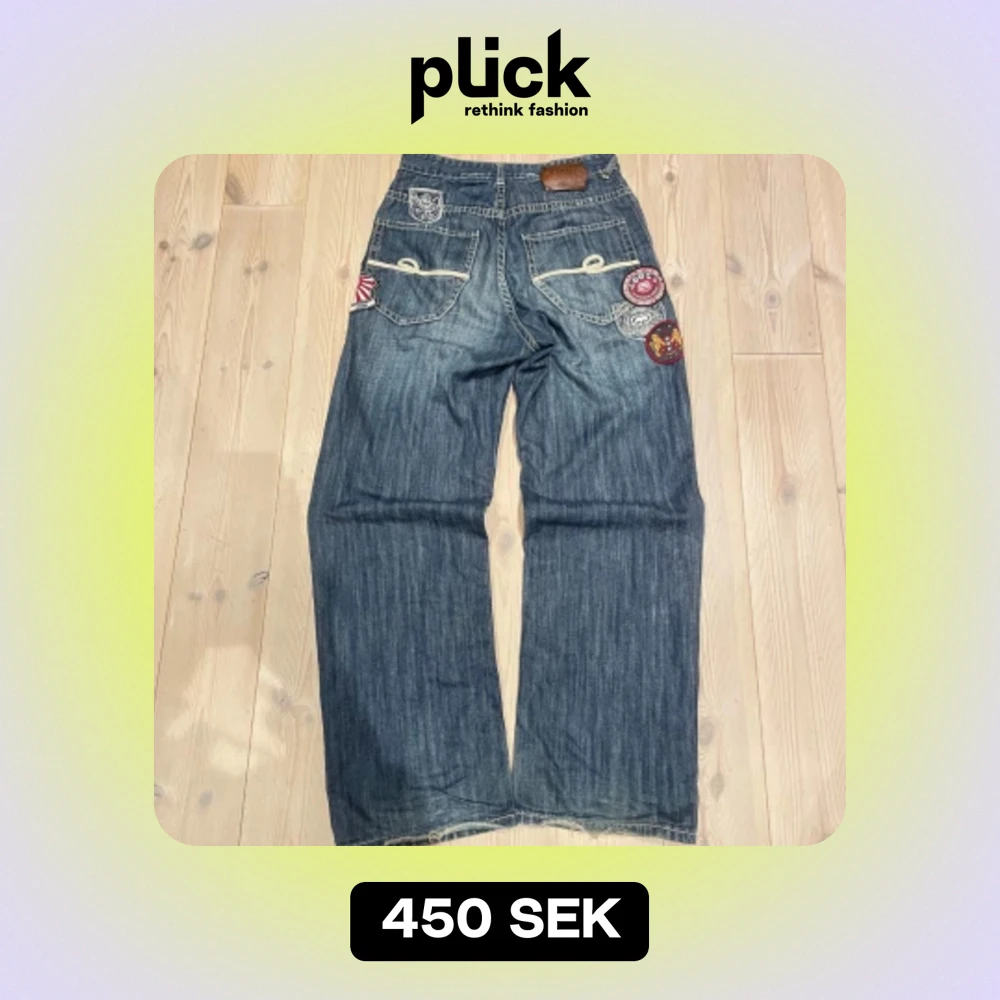 Eckō jeans med sjuka detaljer och skicket är i bra kvalite för billigt pris. Benöppning: 23,5 cm Inseam: 76 cm Storlek: W28 L32