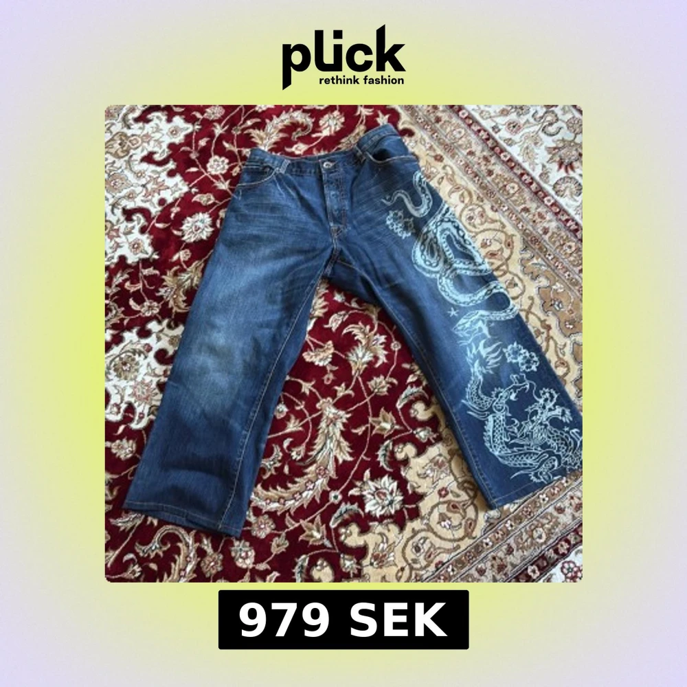 Riktigt snygga ed Hardy jeans som sitter straight/baggy. De är reworkade från w38 men passar nu bra på 32 ish. 94 cm ytterben, midja 38 cm, 68 innerben, 28 benöppning. Modellen är 179 65kg De har en otroligt fin design så hoppas att någon med sjuk swag kan få bära dessa😁kan mötas i sthlm, skriv vid minsta fråga!
