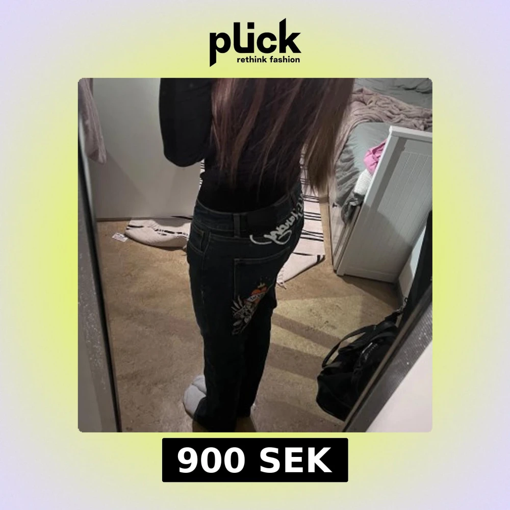 Snygga äkta mörkblå jeans från Ed Hardy. Skriv vid intresse kan gå ner i pris!!⭐️ Jeansen har en bootcut-stil och är perfekta för att ge en extra touch till din outfit.💗Har använt dom fåtal gånger.💘Står 30w/M men passar mig som vanligtvis bär storlek S! Köpte dom för 1300kr (lägger upp igen pga lite intresse på förra anonsen)