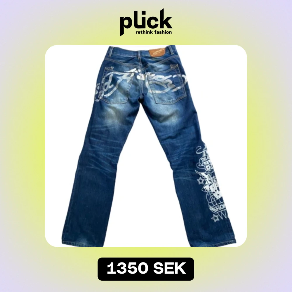 Ett par skit snygga Ed Hardy jeans by Christian Audigier! Köpte de från Sellpy men tyvärr passade de inte. De är i fint skick och har inte några större defekter utöver att märket bak är lite slitet. Midjemått: 76 cm och innerbenslängd: 77 cm.