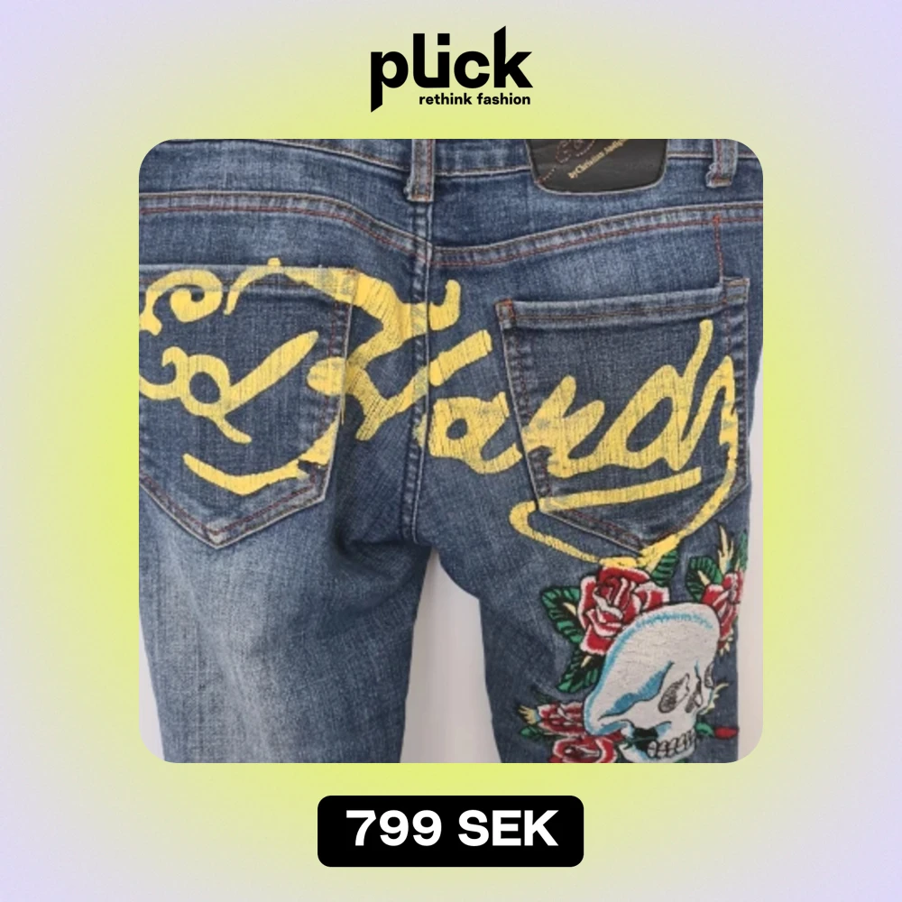 As snygga ed hardy jeans, de är i bra skick med skitsnygga detaljer i bak och på ena benet, skriv gärna vid frågor