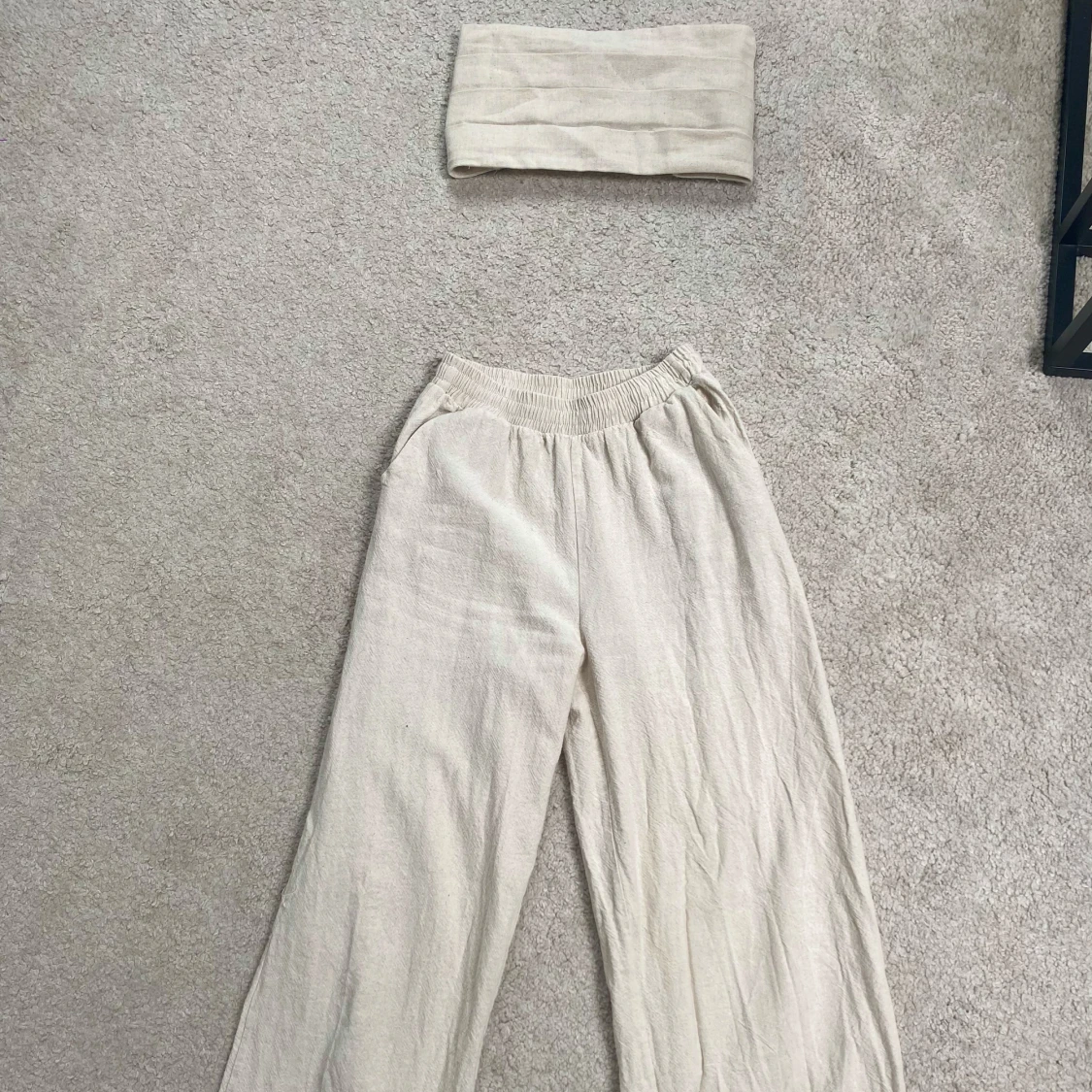 Supersnyggt och bekvĂ€mt linne-set đ€ Toppen Ă€r stretchig/uttöjbar i ryggen. aldrig anvĂ€nts! Passar till mĂ„nga tillfĂ€llen đ„° Köpt pĂ„ Ibiza
