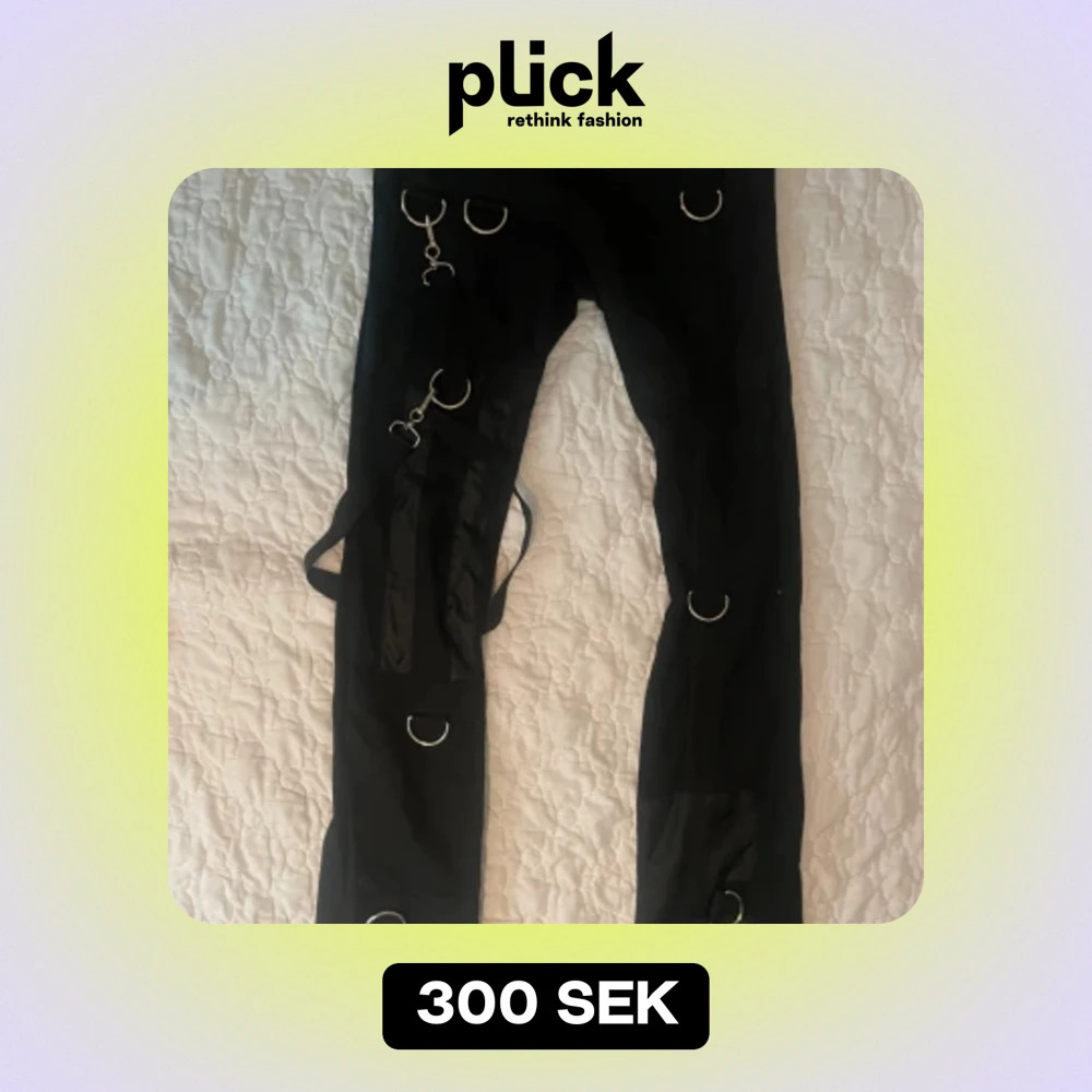 Utsvängda, lågmidjade byxor med metal detaljer. Mid condition
