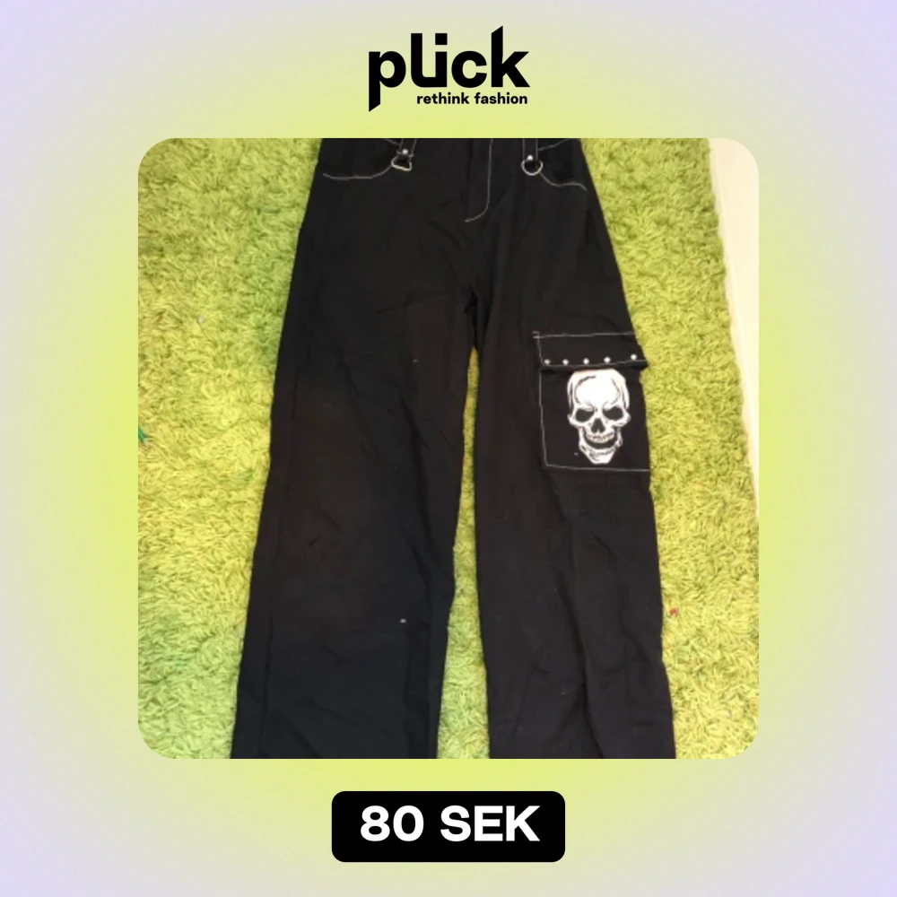Coola byxor med en döskalle på fickan, kontakta gärna innan köp🫶🏻