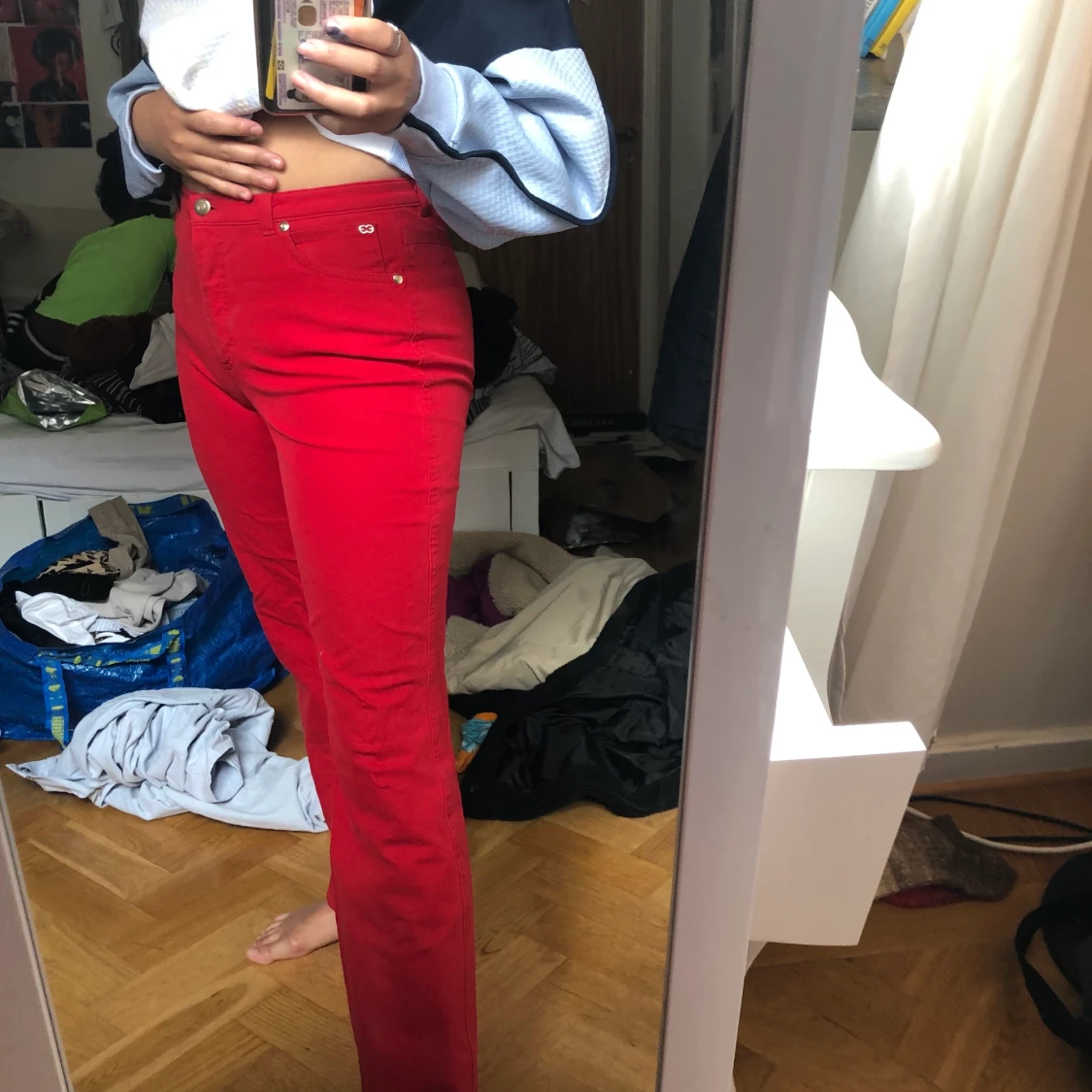 Superfina röda byxor med gulddetaljer köpta på humana second hand🤩🤩😚😚