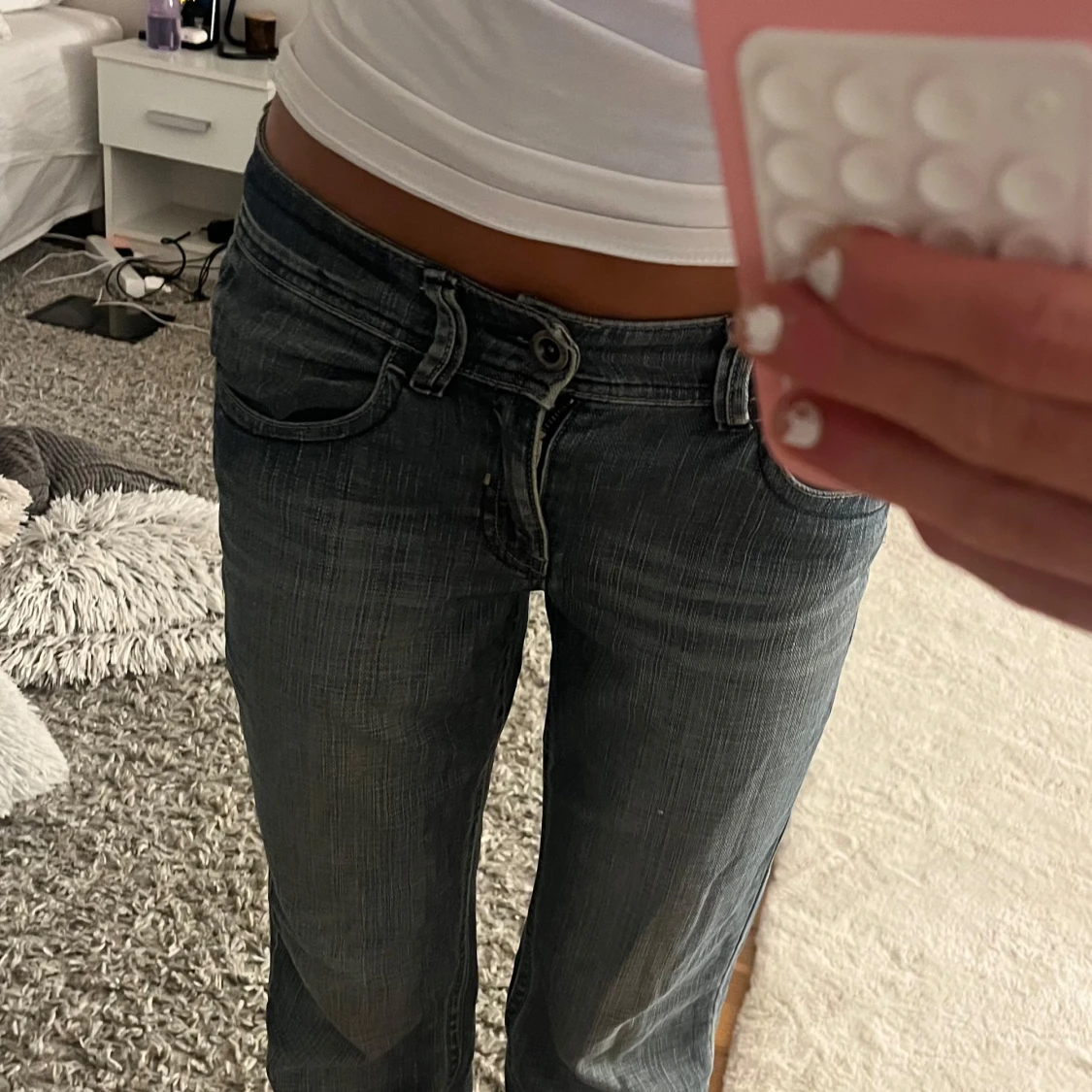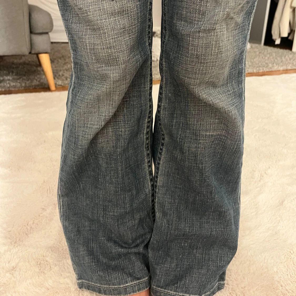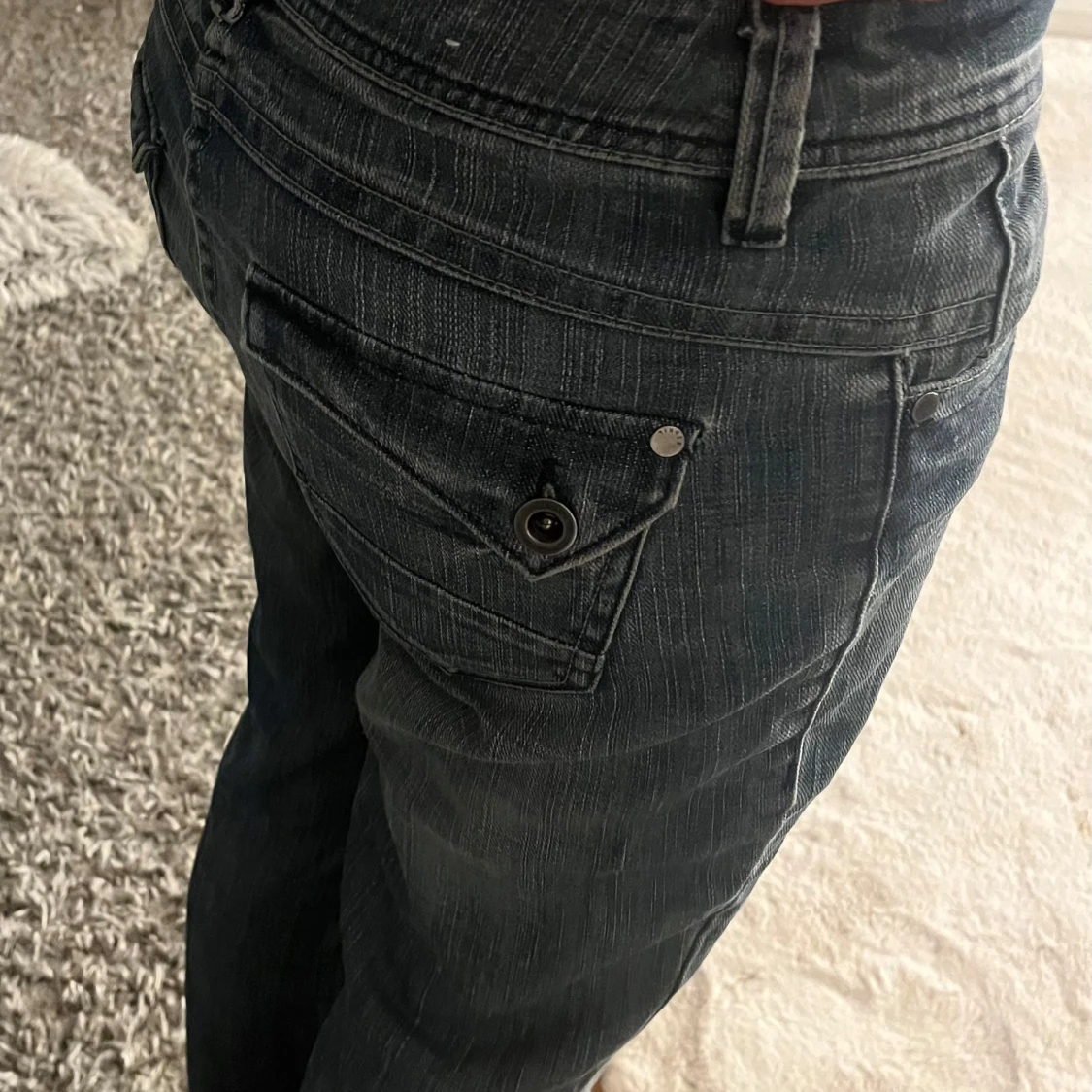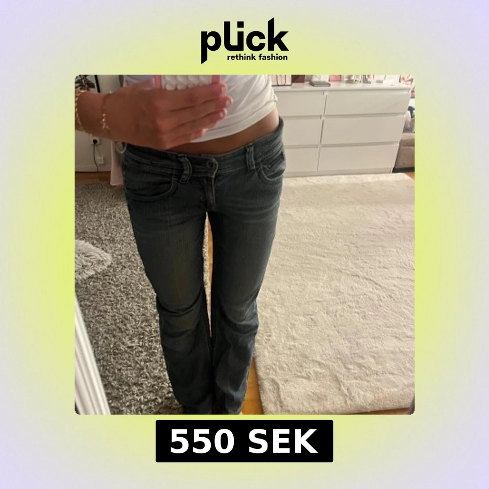 Säljer ett par lågmidjade bootcut jeans😍 Köpta second hand men aldrig använda och i ny skick utan defekter! Skriv om det är något ni undrar och jag kan sänka priset vid snabb affär! Storlek står ej men skulle säga XS/S och passar mig perfekt i längd, jag är 163!