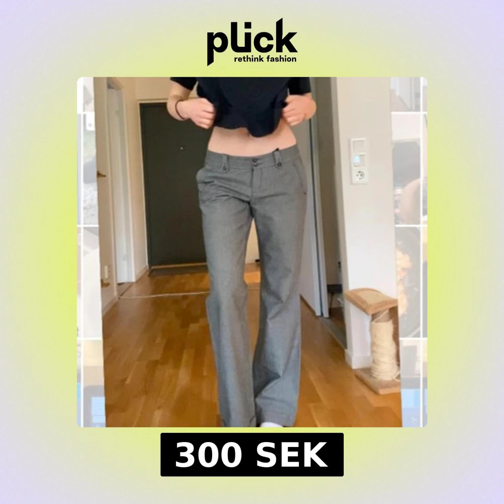 Snygga grå kostymbyxor med låg midja och raka ben. Byxorna har knappar fram och är extra långa så passar mig som är 180cm.