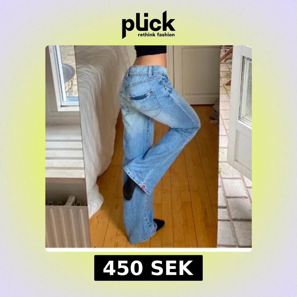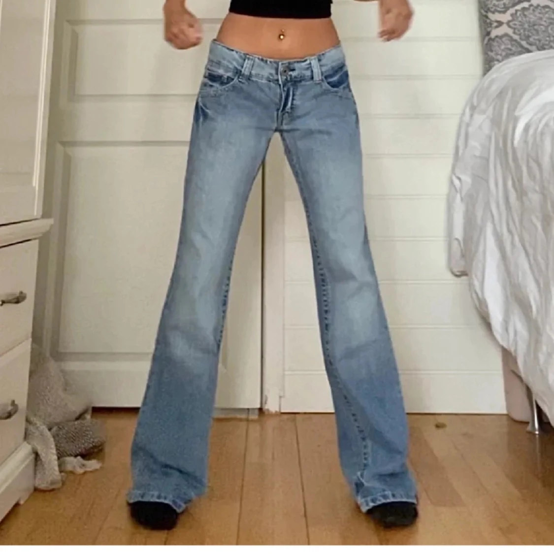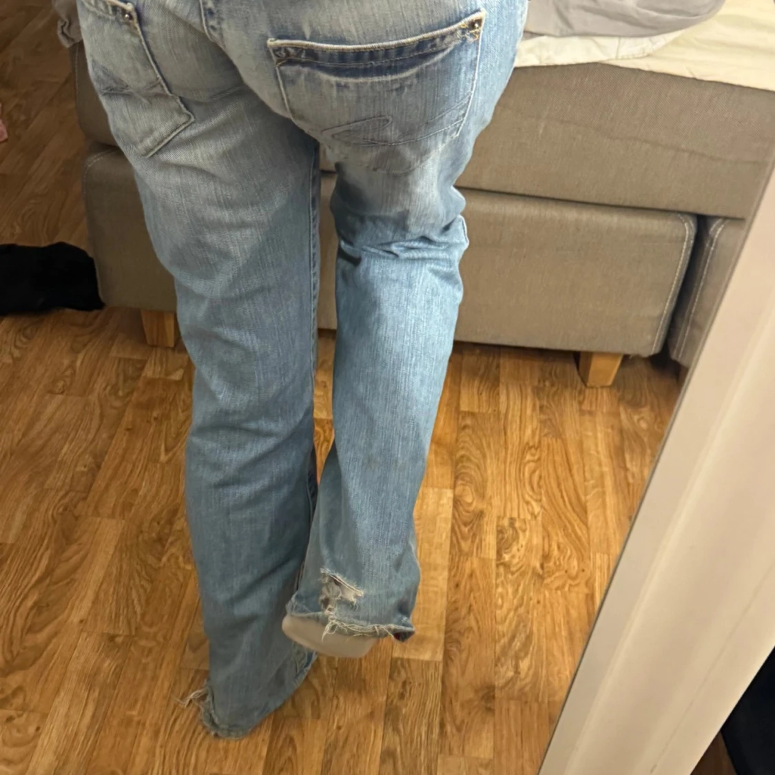Snygga blå bootcut jeans med låg midja från EDC esprit! Lite slitna där nere då dem är för långa för mig💞(är storlek 32/34 i byxor) och jag är 166 cm💞
