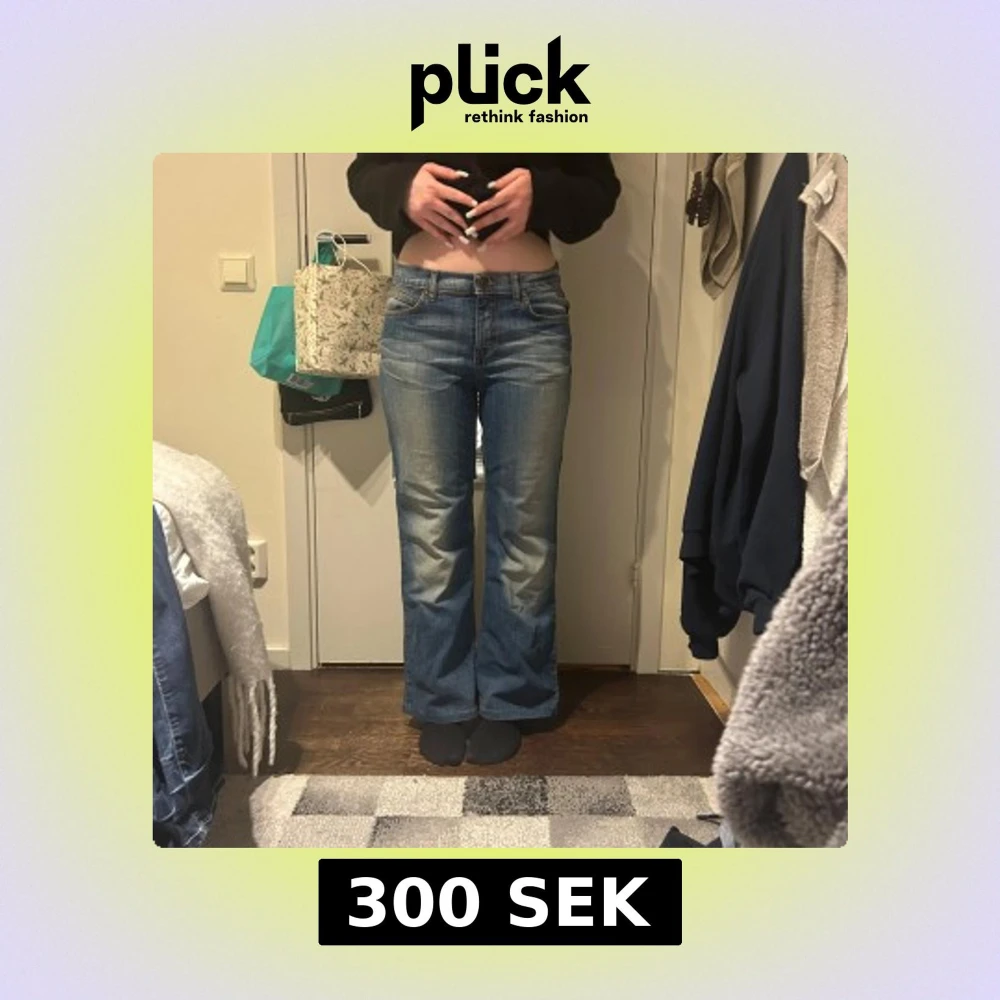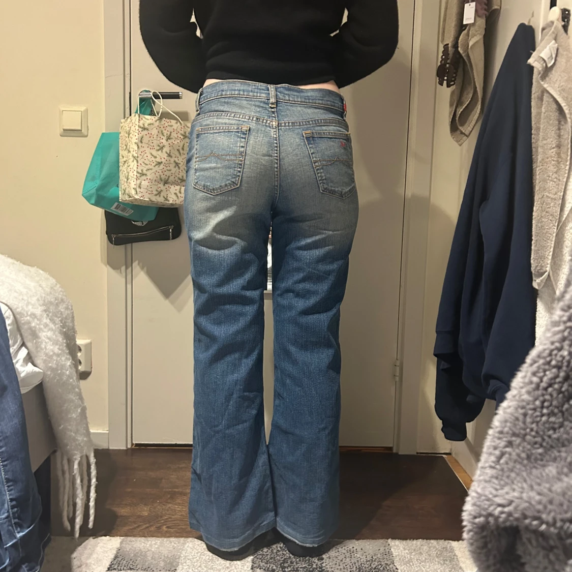 Snygga blå bootcut jeans med klassisk femficksdesign. De har en lågmidjad passform och är perfekta för en avslappnad stil. Jeansen har en lätt tvättad look som ger dem en cool vintagekänsla. Gammal Esprit