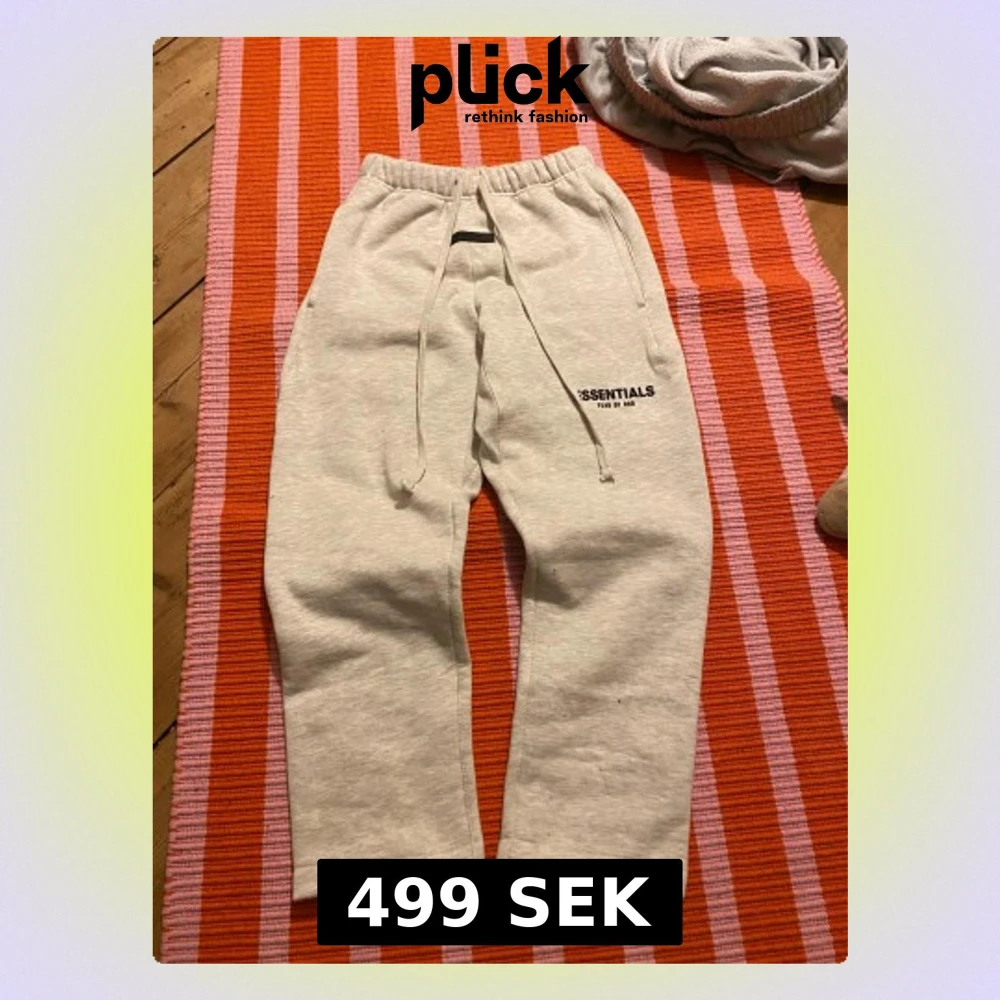 Snygga ljusgrå mjukisbyxor från Essentials Fear of God med svart logga på benet. Byxorna har elastisk midja med snörning och raka ben. Tillverkade i mjukt bomullsmaterial som är perfekt för chill eller träning. Klassisk och clean look.