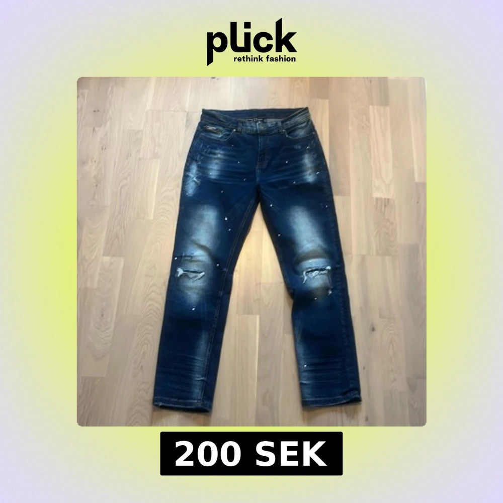 Snygga blå jeans från Supply & Demand med slitna detaljer och hål på knäna. Jeansen har en cool tvätt med ljusare partier och små dekorativa nitar. Klassisk femficksmodell och normal passform, perfekta för en trendig streetstil.