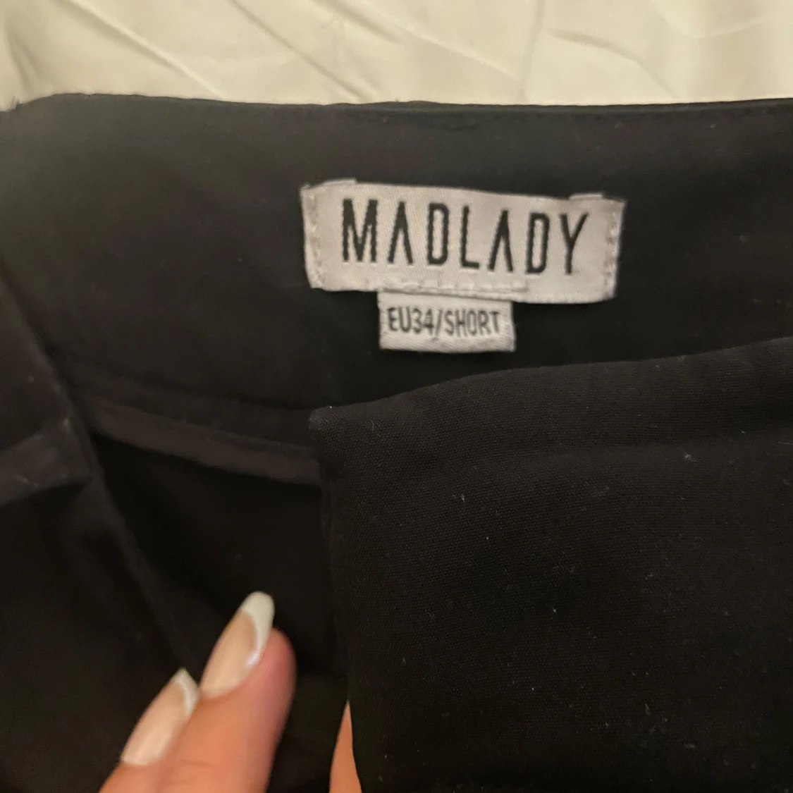 Svarta kostymbyxor från Madlady i storlek EU34/Short. Byxorna har klassisk passform med hällor för bälte och stängs med hake och dragkedja. Perfekta för en clean och stilren look.