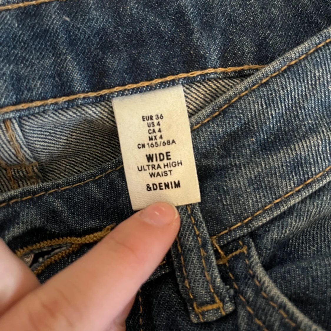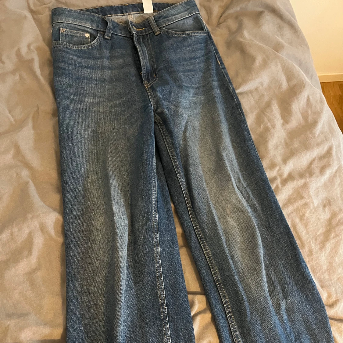 Snygga blå jeans med en ultra hög midja och bred passform. Perfekta för en avslappnad stil. Klassisk femficksdesign med knapp och dragkedja framtill.