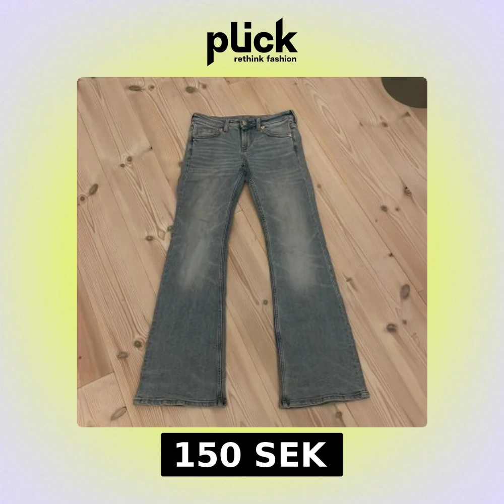 Snygga ljusblå bootcut jeans från H&M. Jeansen har utsvängda ben.