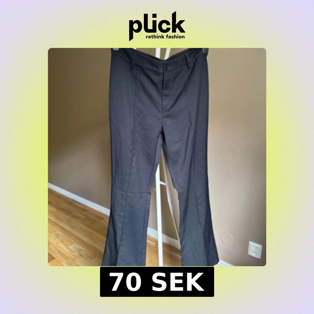 đ©·Bilder frĂ„n min Vinted đ©·. Svarta kostymbyxor frĂ„n H&M Divided i bootcut-modell. Byxorna har hög midja, klassiska pressveck och en enkel bakficka. Snygg passform med bĂ€lteshĂ€llor och knappstĂ€ngning framtill. Perfekta till en stilren look.