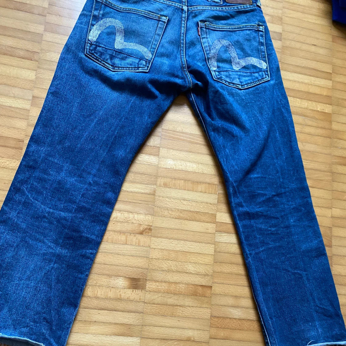 Säljer dessa feta evisu jeansen eftersom dom är för små och inte kommer till användning. Det är bara å skriva vid frågor