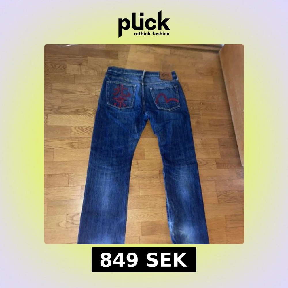 Sköna evisu jeans från Japan med selvedge denim och röd tryck på baksidan