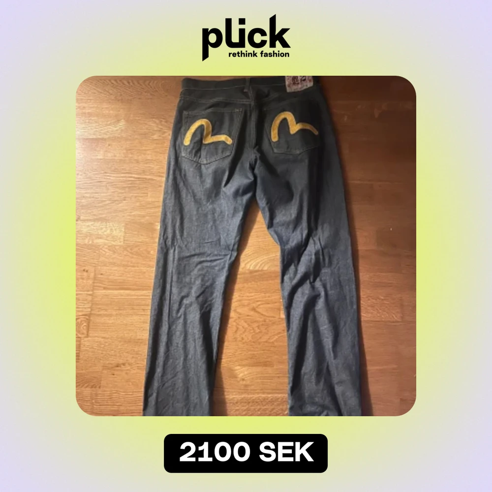 Säljer mina VINTAGE ÄKTA EVISU JEANS❗️ evisu jeans säljs för mellan 3-7 tusen kr men jag säljer dessa för 2100 kr , kan diskuteras strl 32. Skriv för fler bilder Väldigt bra skicka förutom att det är nött längst ner på benet (SKRIV FÖR BILD ❗️❗️)