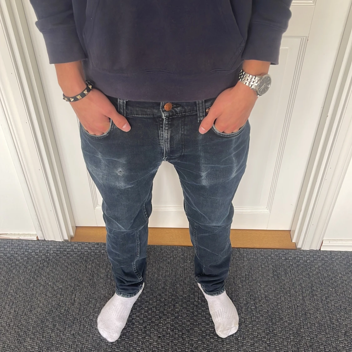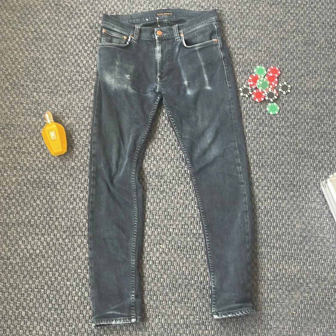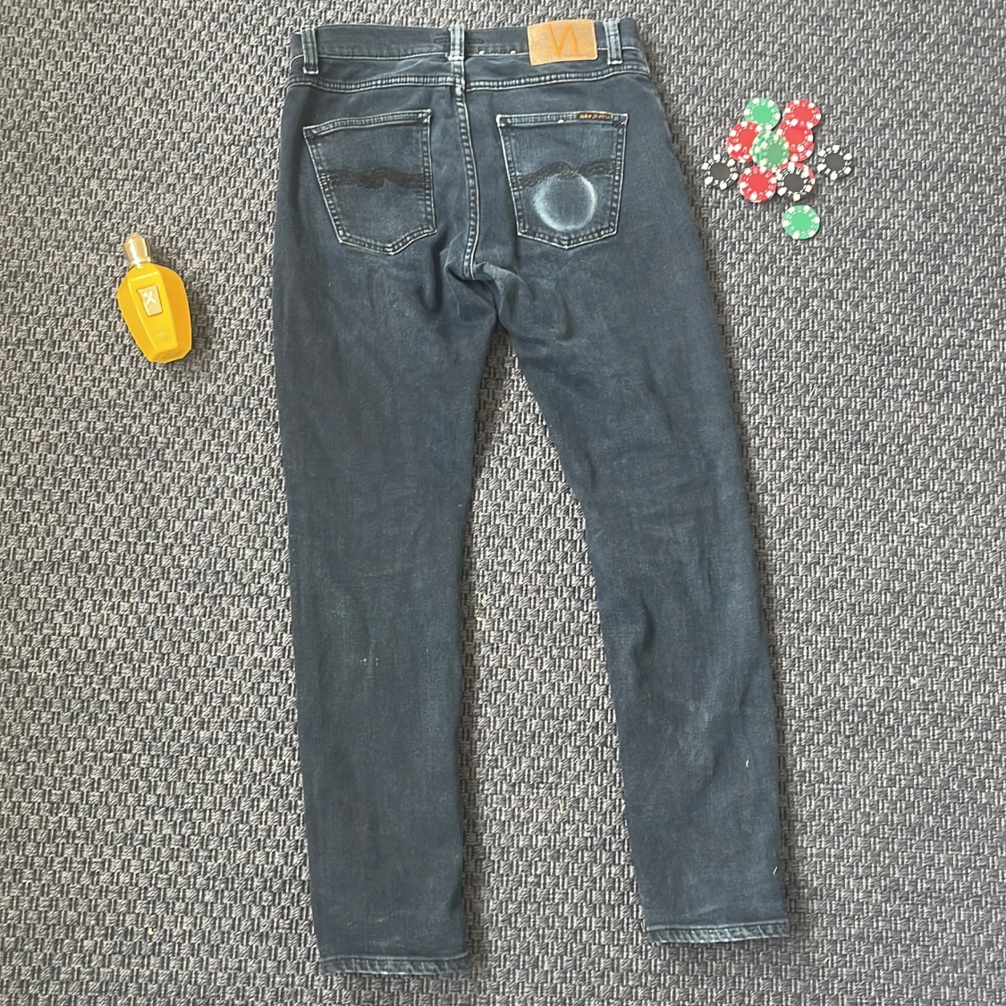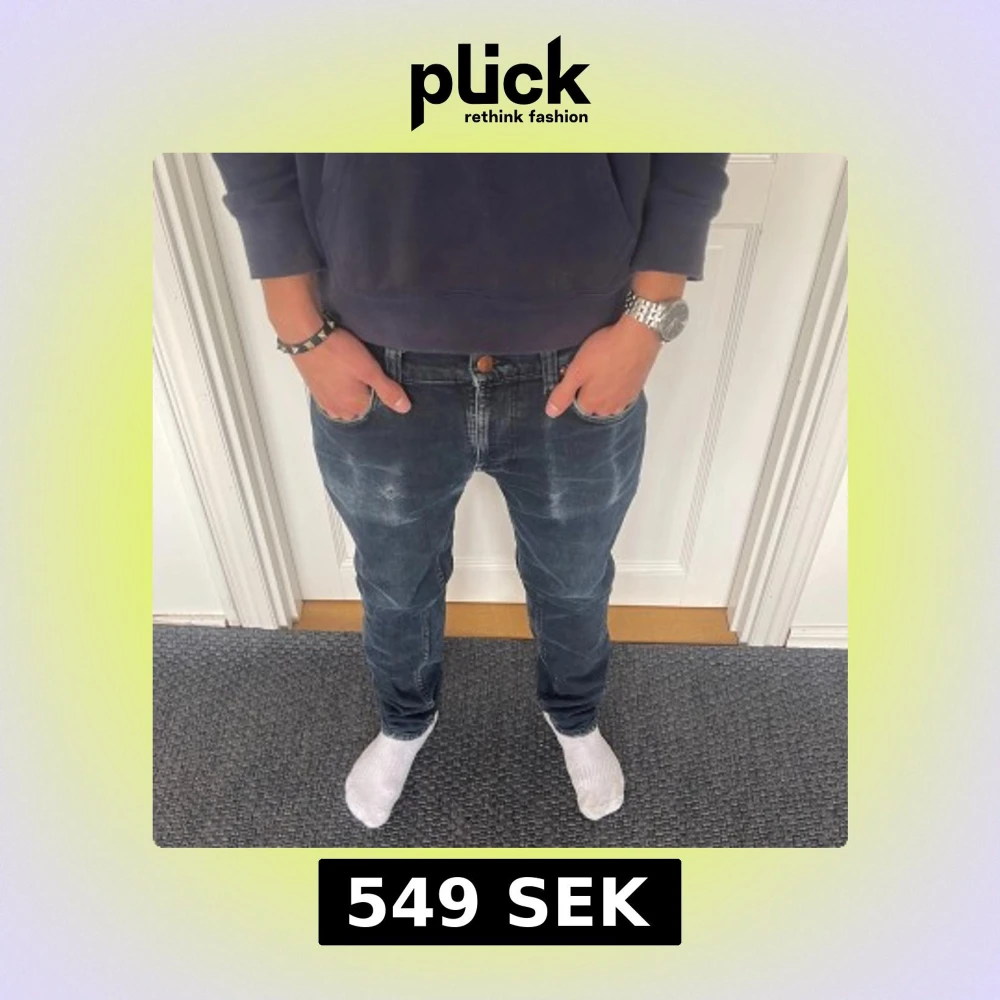 Säljer nu dessa riktigt feta nudie jeans med sjukt snygga fades! Hårt bruk har lett till sjukt snygga detaljer 😁🙌 Storlek: W29 L30 Skick: Mycket bra! Defekter: Hål i höger ficka, gratis att laga på nudie jeans affär🤝 Nypris: 1700 kr Mitt pris 549 kr Hör gärna av er vid funderingar 🙌