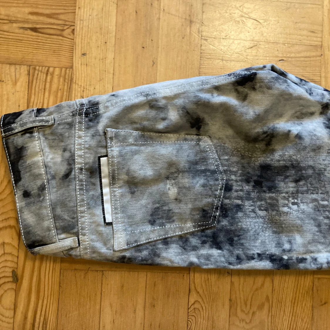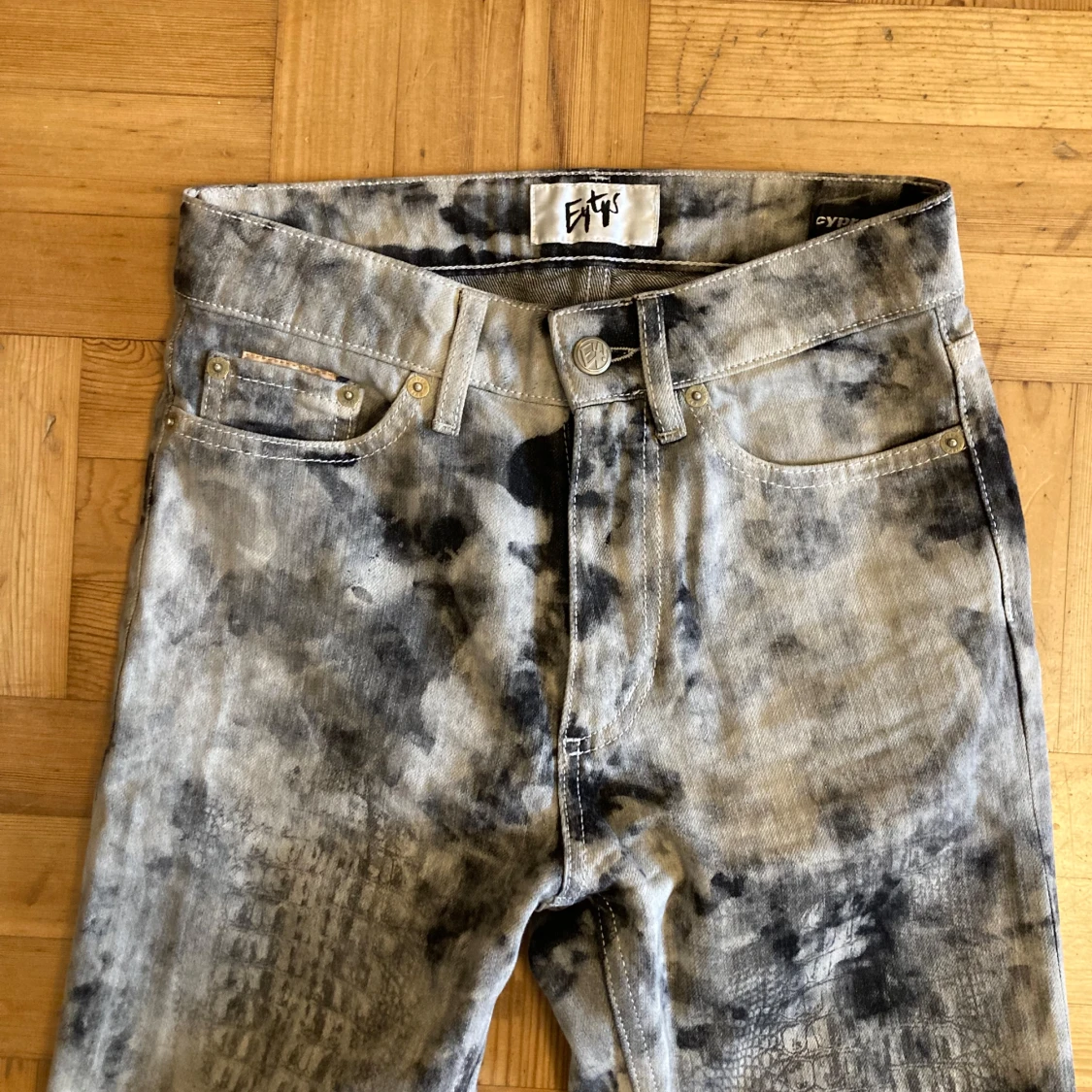 Eytys-jeans i mönstret predator, raka i benet och tighta över höften, mycket gott skick