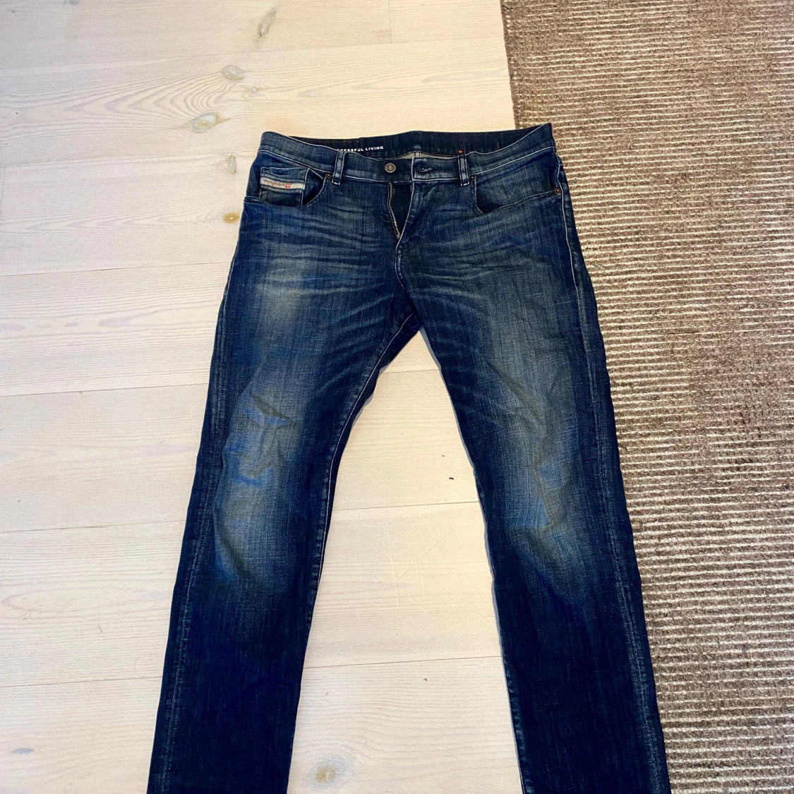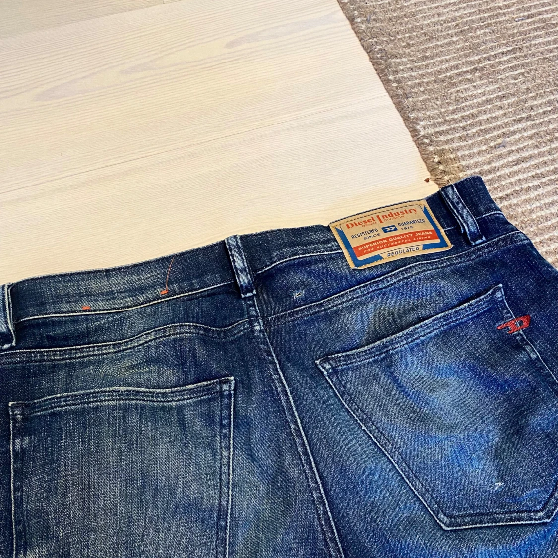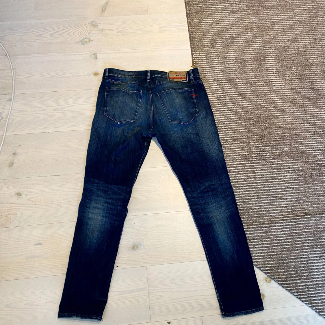 Säljer dessa goa diesel slim jeans med riktigt snygga slitningar! Köpta på nk Göteborg för 1700 för ca 1 år sedan men de har inte använts jättemycket därav säljer jag dem. Det är ett litet hål på bakfickan från nycklar och ett litet hål ovanför bakfickan som är från att en lapp satt där som jag tog bort. Därav priset, men annars bra skick! Slimfit men lite extra benutrymme. W32 passar mig som är 183, 82kg. Dma gärna om du har frågor eller prisförslag👍