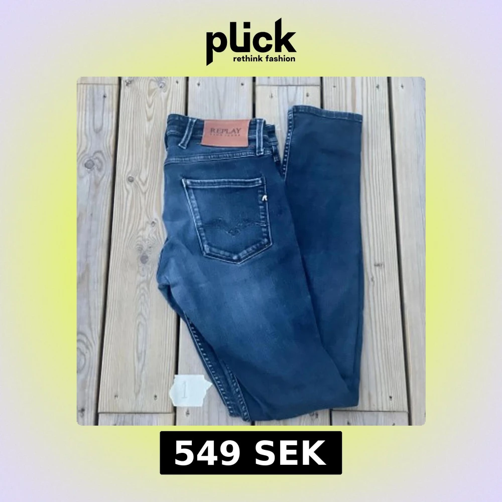 Snygga blå slim fit jeans från Replay med klassisk femficksdesign och diskreta slitningar. Jeansen har en mörk tvätt och tydliga Replay-detaljer på fickorna samt läderpatch bak i midjan. Perfekta för dig som gillar en smalare passform.
